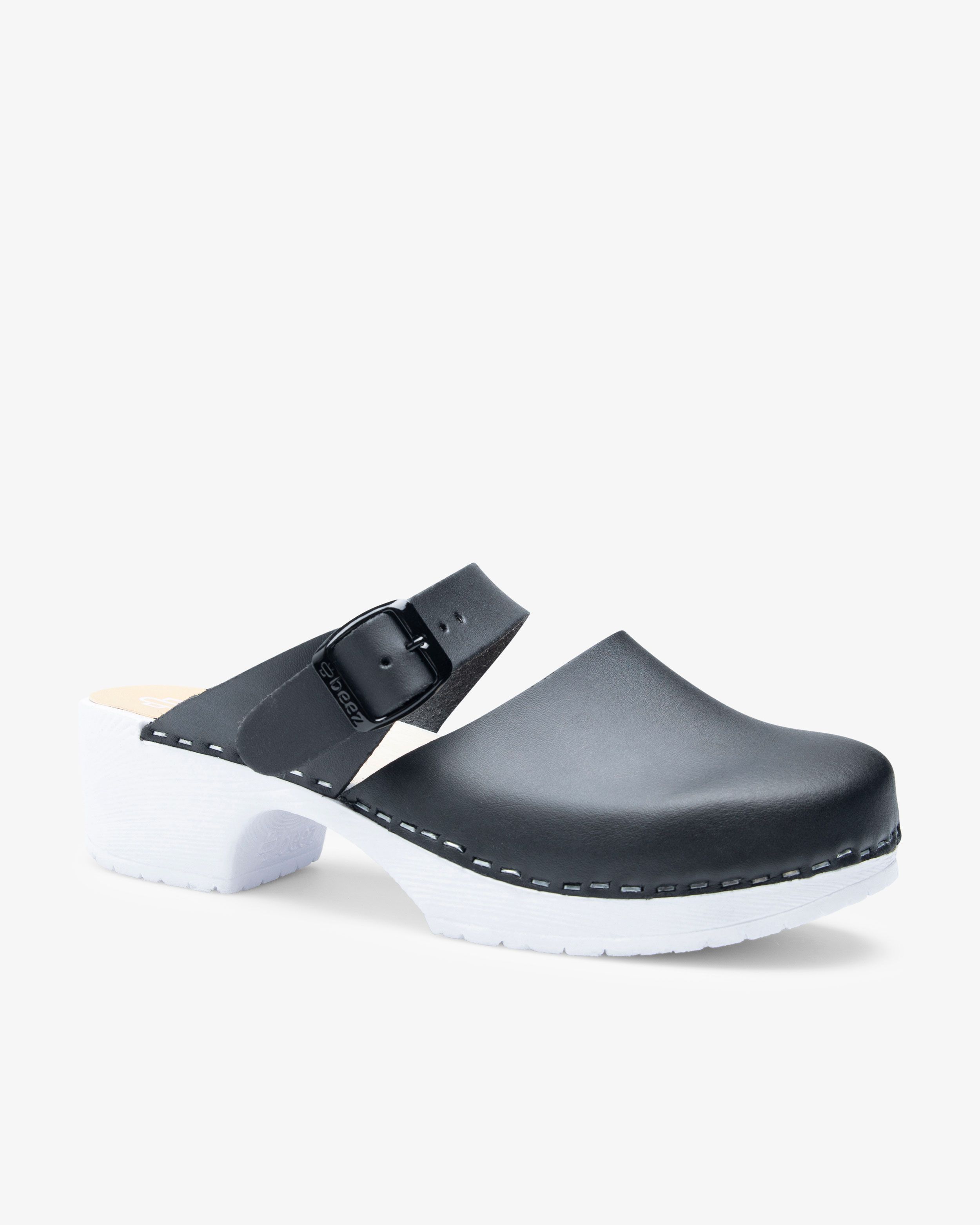Beez Belle Slip-on Clogs mit Holzsohle Schwarz Vegan