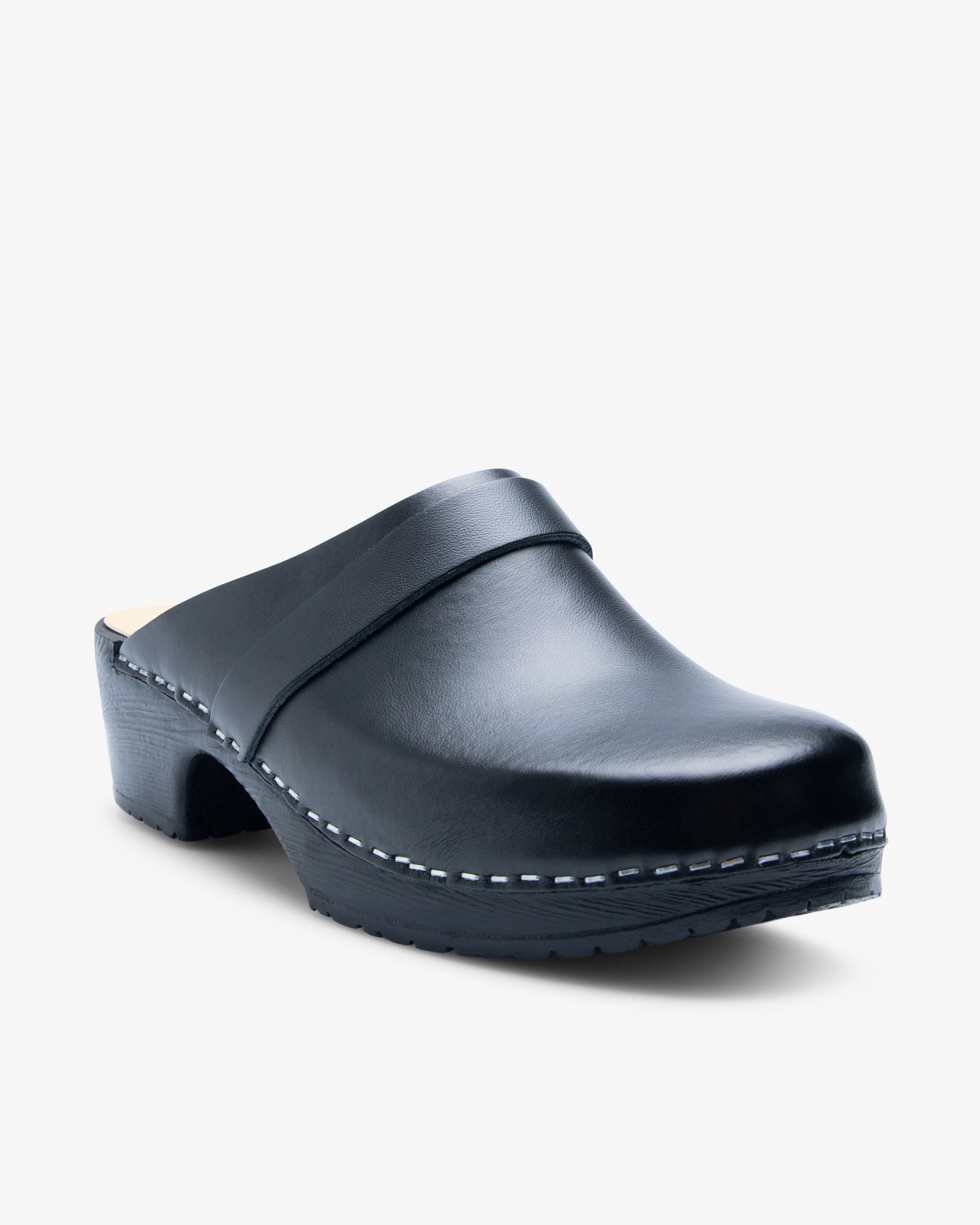Beez Traditionell Slip-on Clogs mit Holzsohle Schwarz