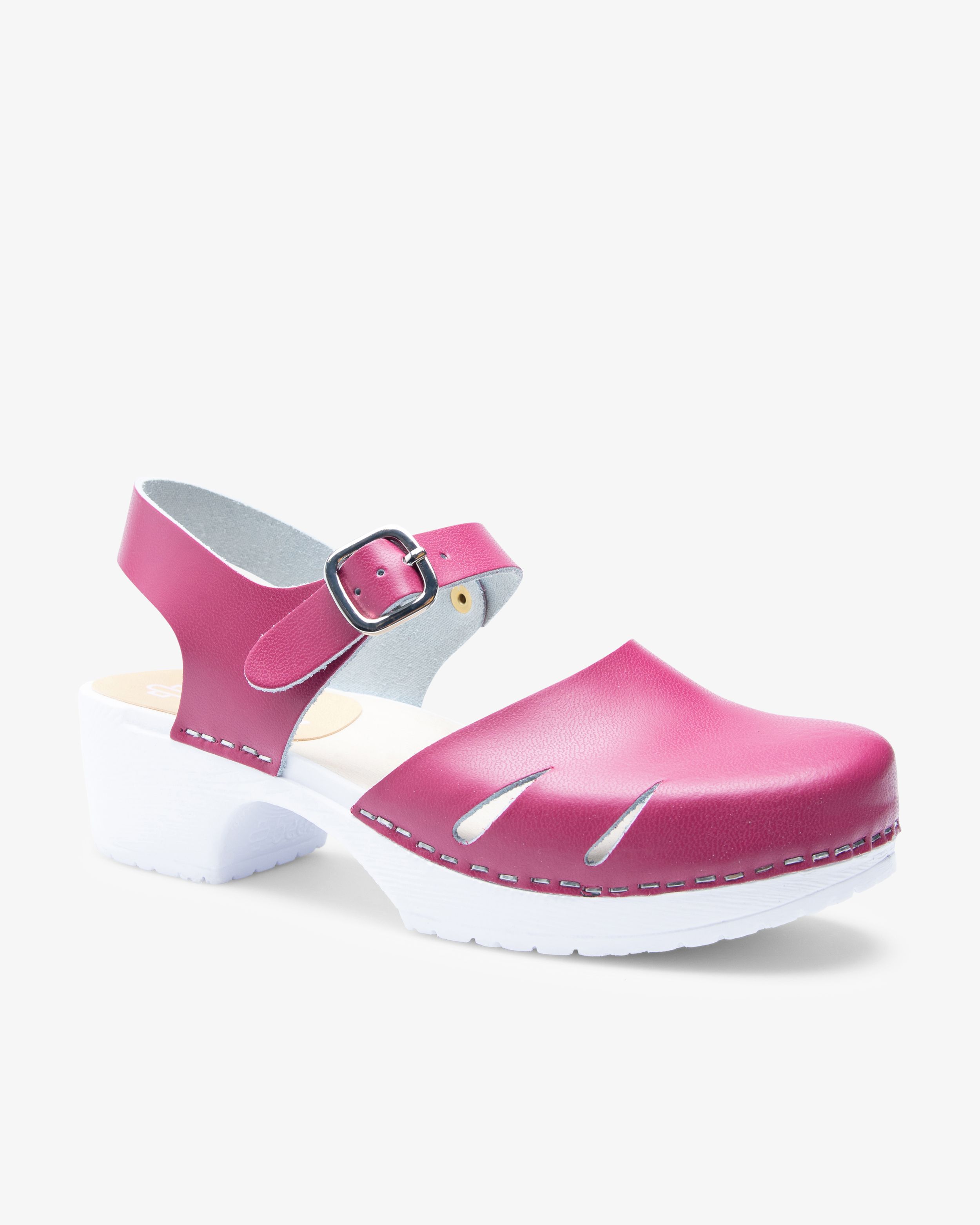 Der Beez Très Chic Clog mit Holzsohle in Dunkelrosa wurde für lange Arbeitstage entwickelt. Der Schuh bietet einen Fersenriemen für sicheren Halt sowie einen verstellbaren Riemen für eine individuelle Passform. Die stabile Sohle aus PU-Gummi mit Holzeinlage sorgt für hervorragende Unterstützung. Das Obermaterial aus PU ist atmungsaktiv und leicht abwischbar – optimal für die Pflege.