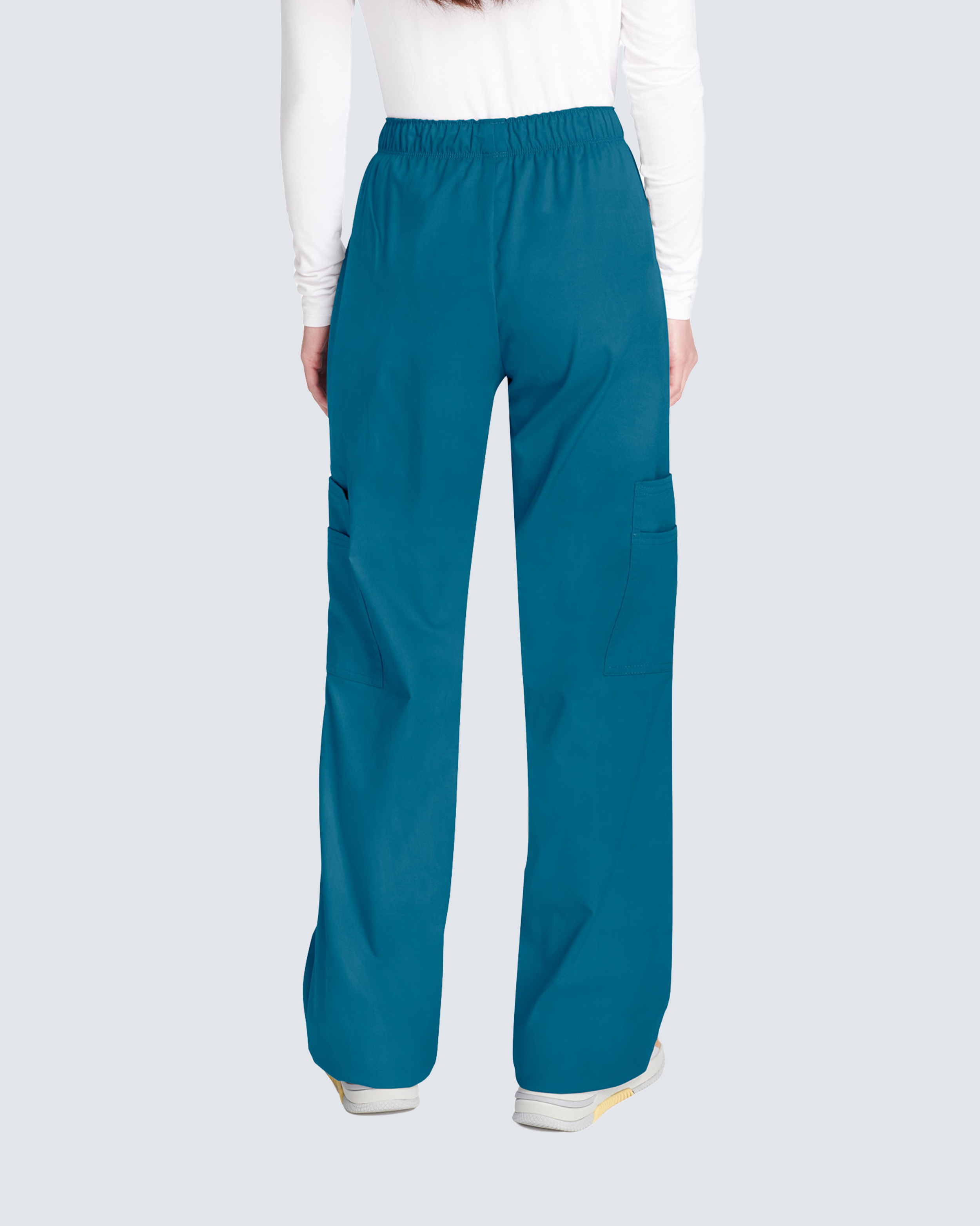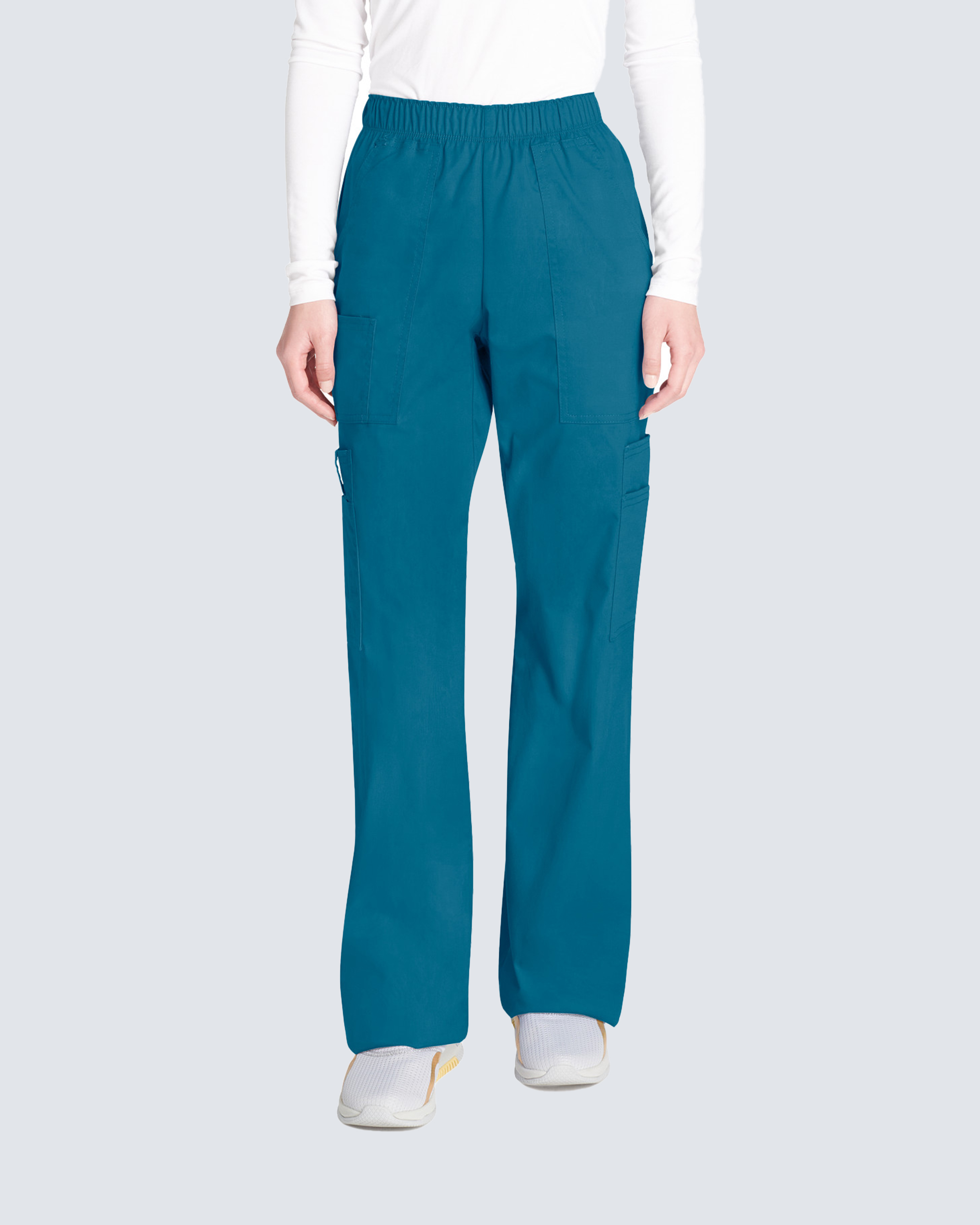 Speziell für das Pflegepersonal bietet die Cherokee Pull-on Cargo-Hose eine ideale Mischung aus Funktion und Komfort. Diese Arbeitshose verfügt über einen soften Gummibund an der normalhohen Taille und einen geraden Schnitt. Die Beinlänge ist anpassbar. Sieben praktische Taschen bieten reichlich Platz für alle notwendigen Arbeitsmittel. Das Material ist langlebig, atmungsaktiv und mit 2-Wege-Stretch versehen.