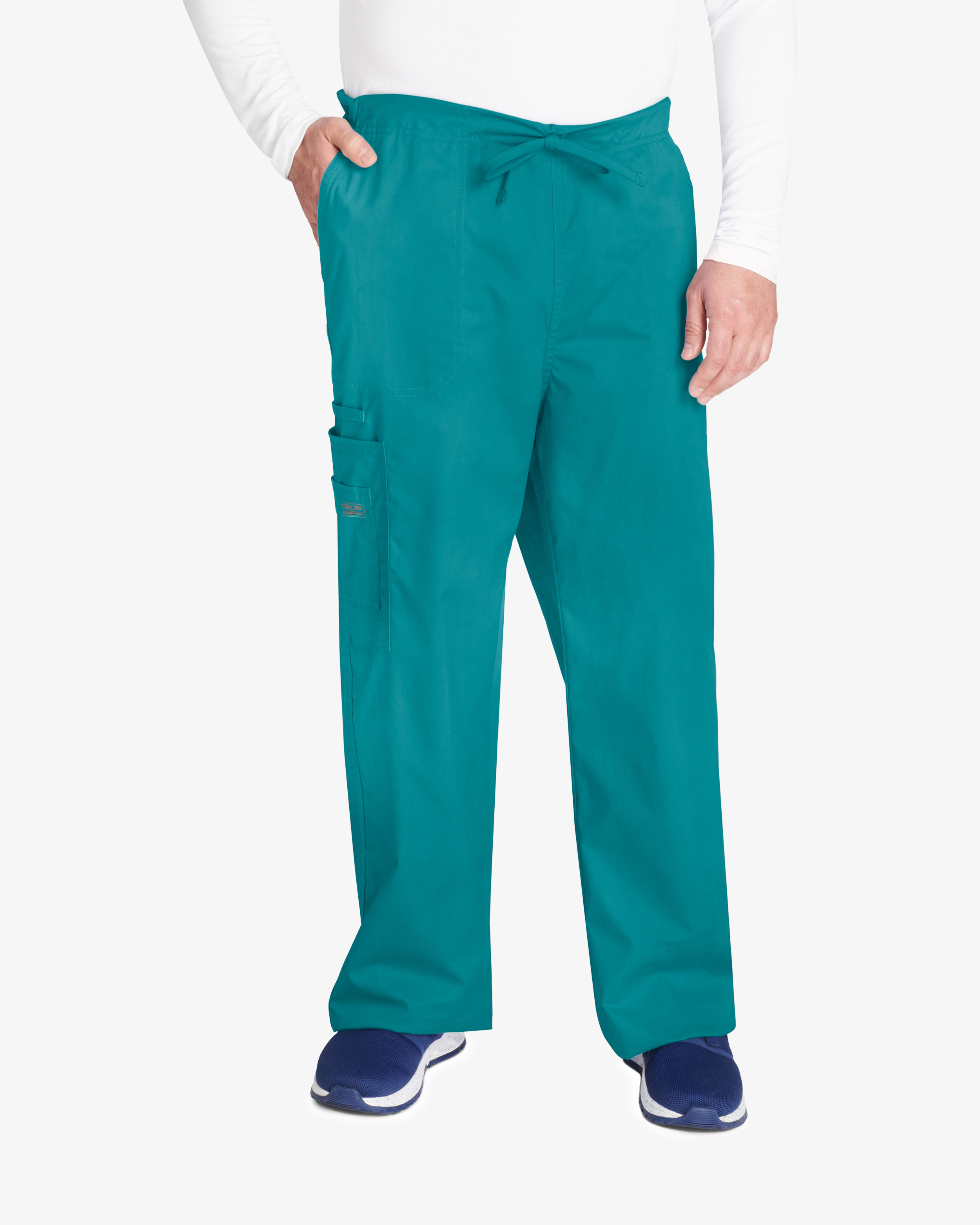 Entdecken Sie diese klassische Arbeitshose in Türkis mit gerader Passform, mittelhoher Taille sowie Gummizug und Kordelzug in der Taille. Diese Unisex-Hose ist mit insgesamt fünf Taschen ausgestattet, was reichlich Stauraum für notwendige Utensilien und Hilfsmittel bietet. Perfekt für alle, die eine weiche, pflegeleichte und strapazierfähige Arbeitshose suchen.