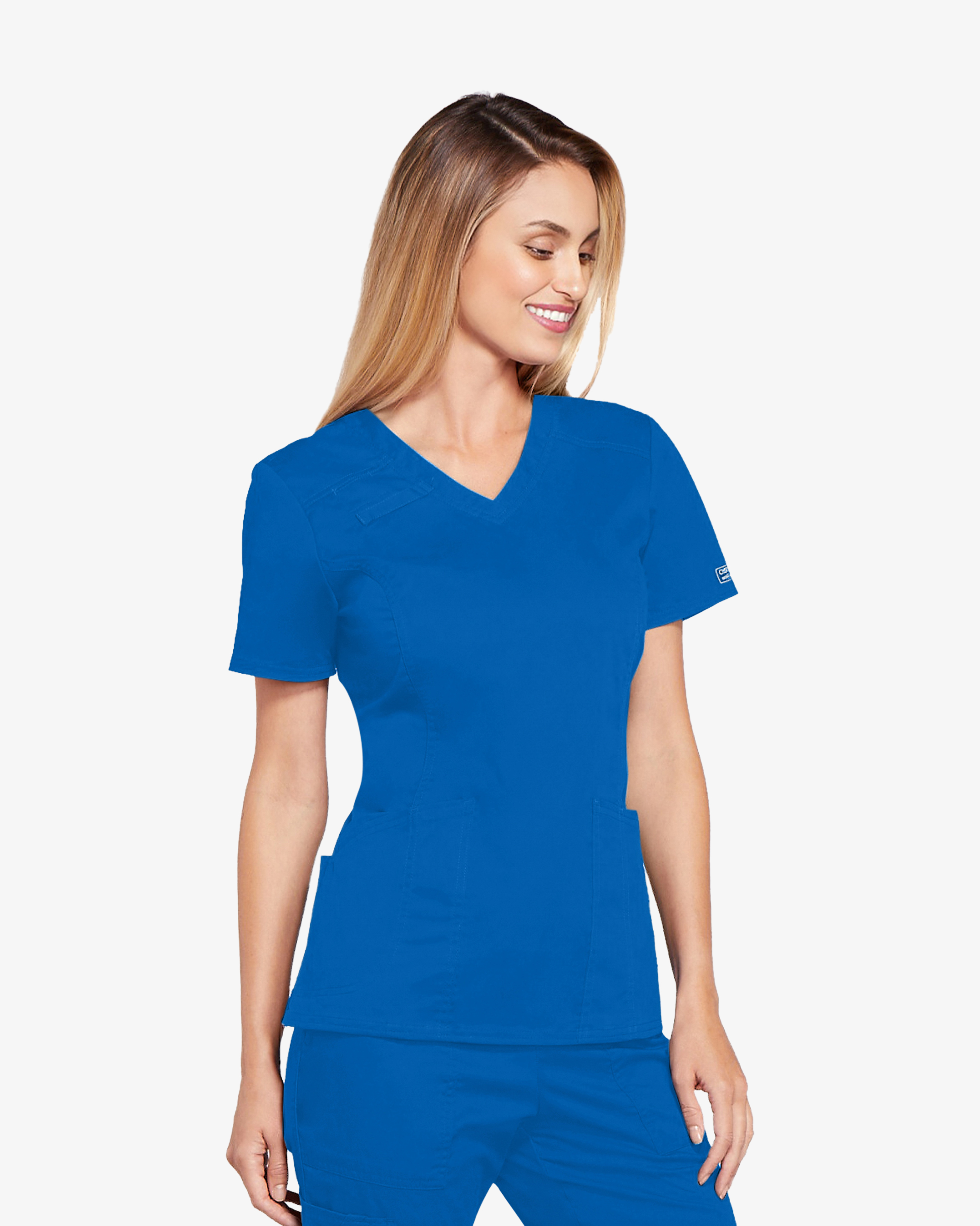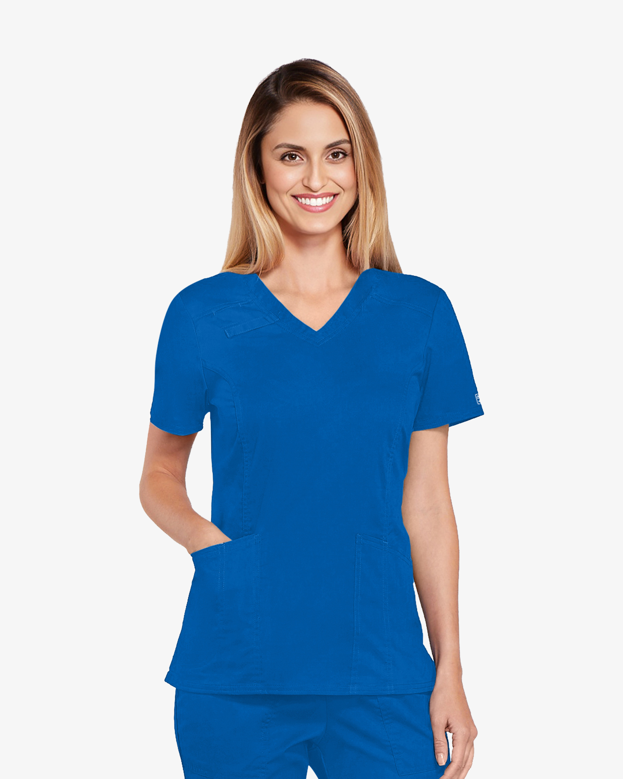 Eine Tunika, die Funktionalität und modernen Stil für einen professionellen Arbeitsalltag vereint. Diese Tunika mit V-Ausschnitt und 2-Wege-Stretch hat eine moderne, klassische Passform und praktische Details wie eine Schulterpasse, einen Ausweishalter, eine Stethoskopschlaufe und mehrere geschickt platzierte Taschen. Seitenschlitze und Doppelnähte sorgen für zusätzliche Bewegungsfreiheit und Haltbarkeit, während Prinzessnähte die taillierte Silhouette betonen. Rückenlänge 66 cm.