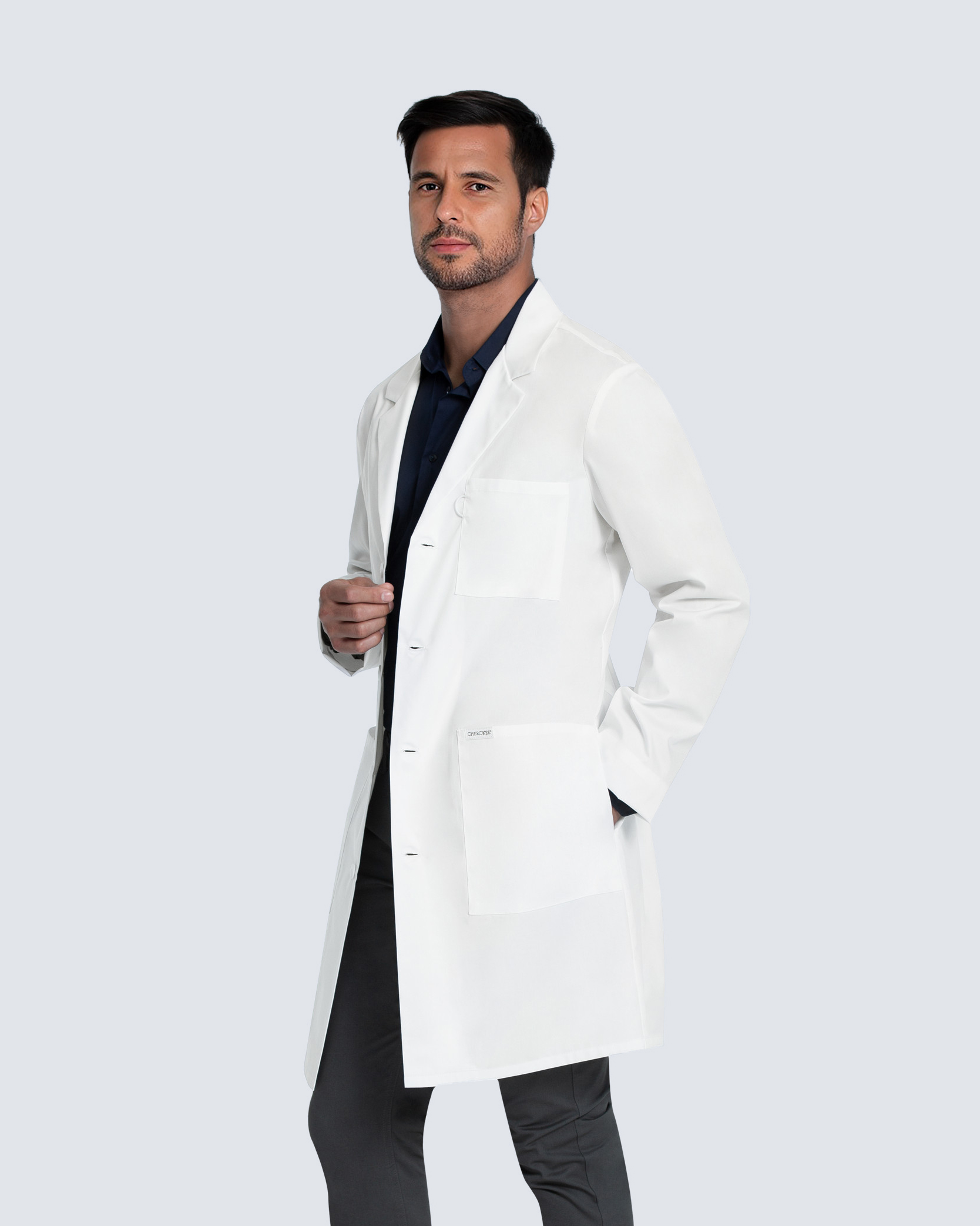 Dieser moderne Unisex-Arztkittel von Project Lab by Cherokee wurde entwickelt, um Funktionalität, Komfort und Stil zu vereinen – die perfekte Wahl für Ärzt:innen, Laborpersonal und andere Fachkräfte im Gesundheitswesen.