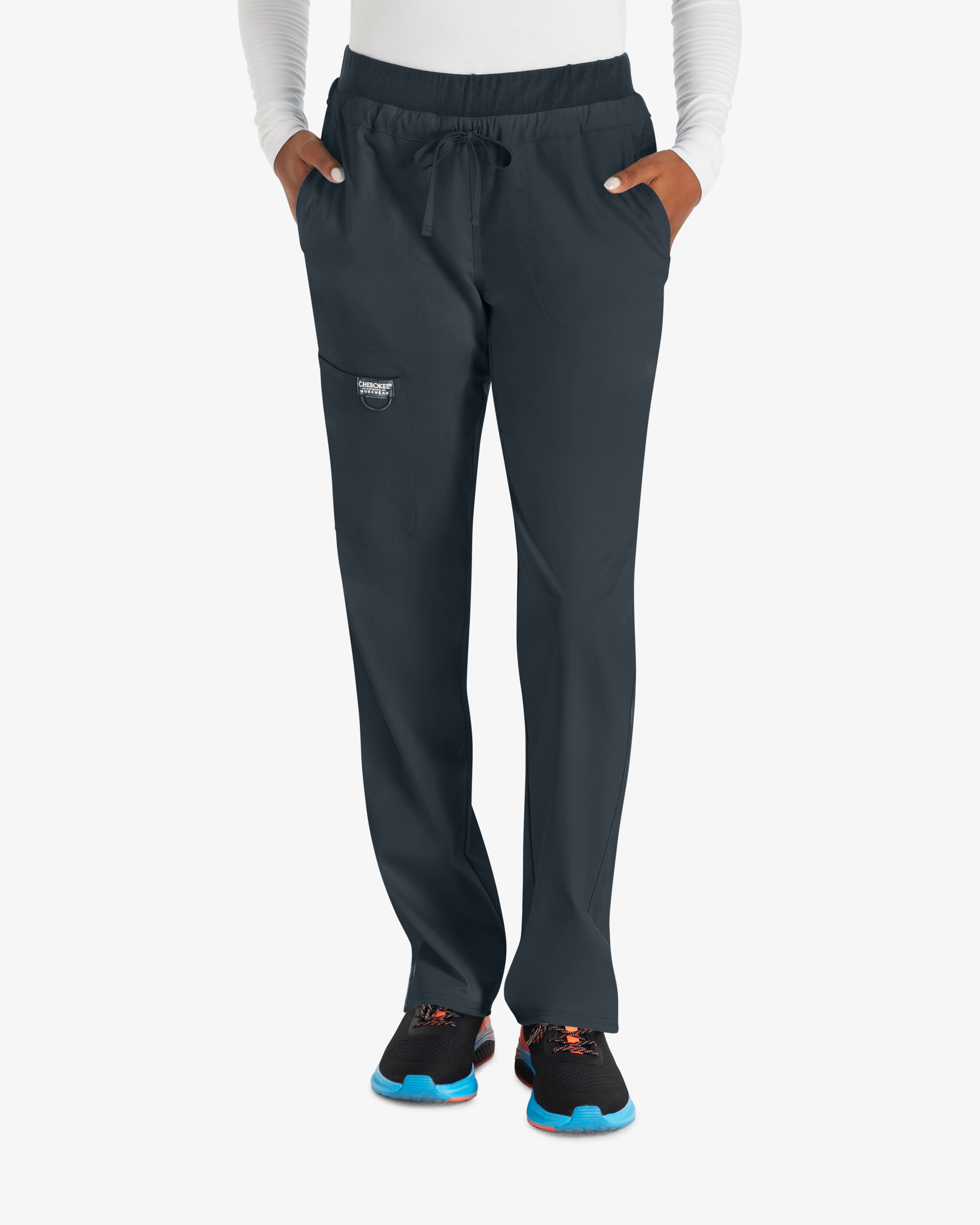 Bequeme Arbeitshose mit mittlerer Taille und konisch zulaufenden Beinen, die für die täglichen Anforderungen im Gesundheitswesen konzipiert ist. Der dehnbare Stoff mit 2-Wege-Stretch sorgt für klare Bewegungsfreiheit und Komfort bei langen Schichten. Die Hose hat einen elastischen Bund mit Kordelzug, schräge Vordertaschen, eine praktische Cargotasche und zwei Gesäßtaschen für intelligente und leicht zugängliche Aufbewahrung. Innere Beinlänge 79 cm.