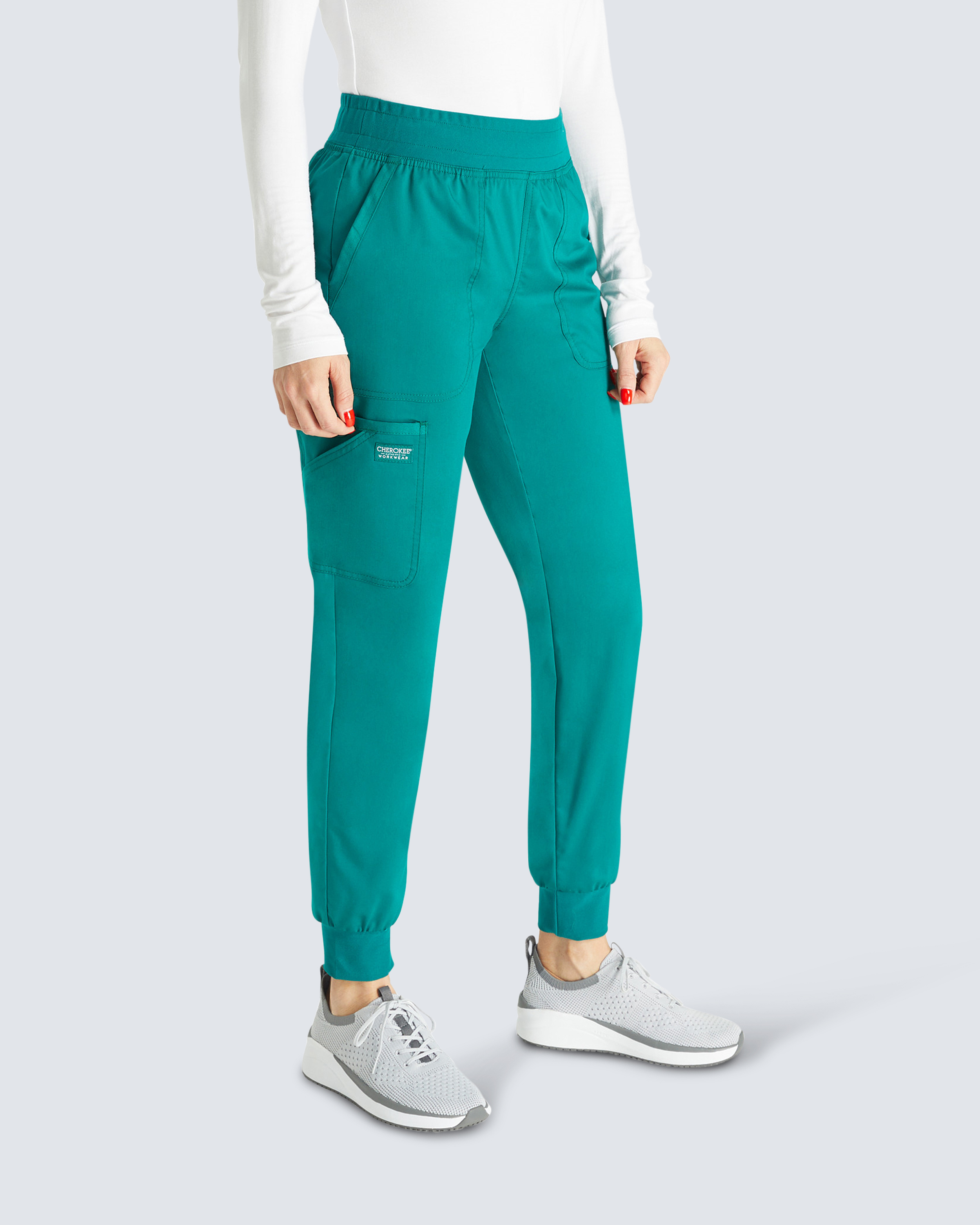 Diese Hose mit Bündchen im klassischen Jogging-Stil kombiniert Stil und Funktion für das Personal im Gesundheitswesen. Mit mittelhoher Taille, elastischem Gummizug und Kordelzug hinten bietet sie den ganzen Tag Komfort. Die Taschen umfassen schräge Vordertaschen, eine Gesäßtasche und eine doppelte Seitentasche mit Instrumentenschlaufe für einfachen Zugriff auf Werkzeuge. Ihre moderne Silhouette ist perfekt für sowohl professionelle als auch dynamische Arbeitsumgebungen.