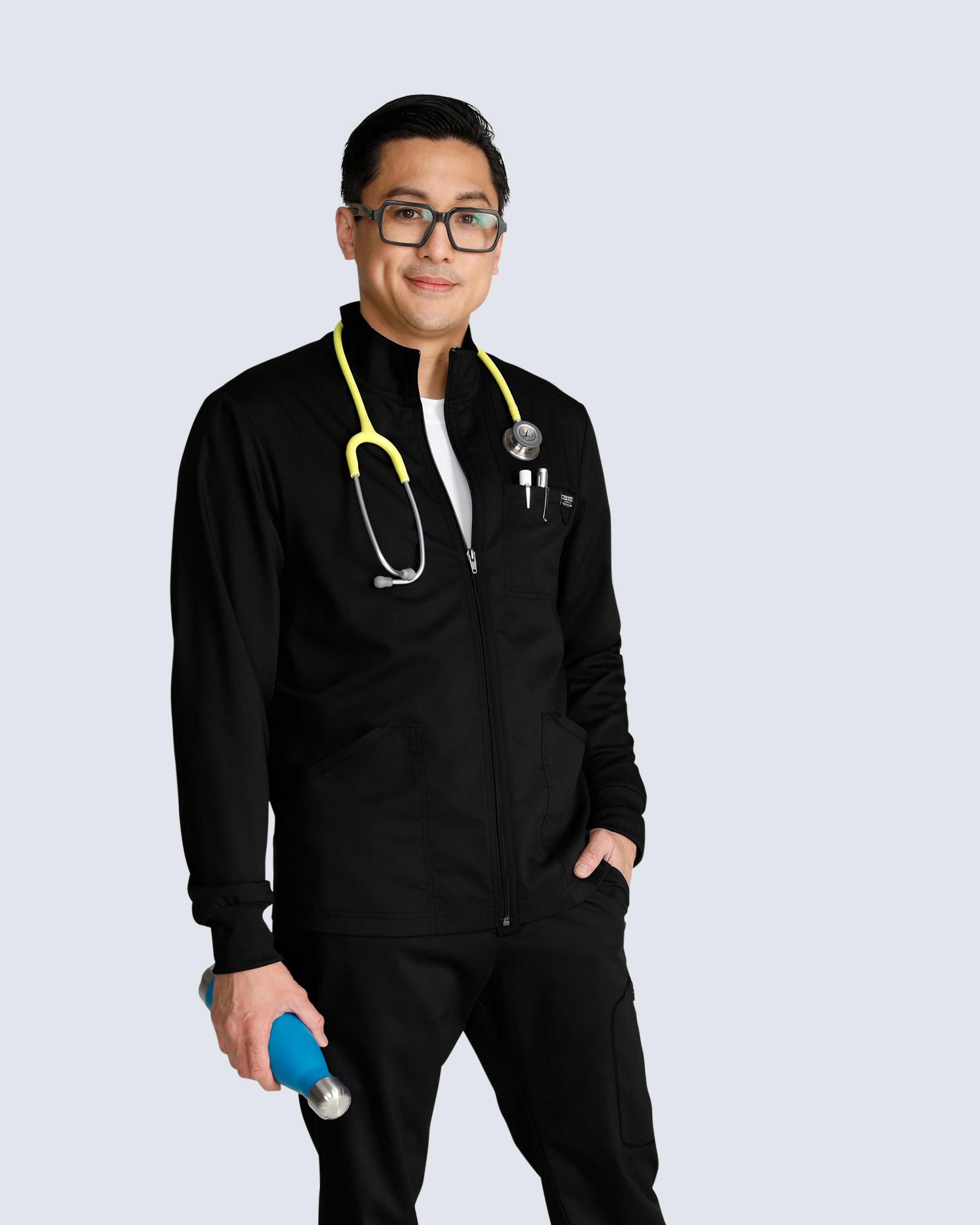 Funktionalität und modernes Design werden in dieser Jacke vereint, ideal für medizinisches Personal, das Komfort und praktische Details schätzt. Sie hat einen Reißverschluss vorne und strategisch platzierte Taschen, darunter aufgesetzte Taschen, eine Brusttasche und eine Handytasche. Eine Ärmeltasche mit Sicherheitsreißverschluss ist ebenfalls vorhanden. Sportliche Elemente wie ein Logo-Etikett und eine elastische Bungee-Schlaufe erleichtern das Aufhängen. Eine vielseitige Jacke für Damen und Herren.