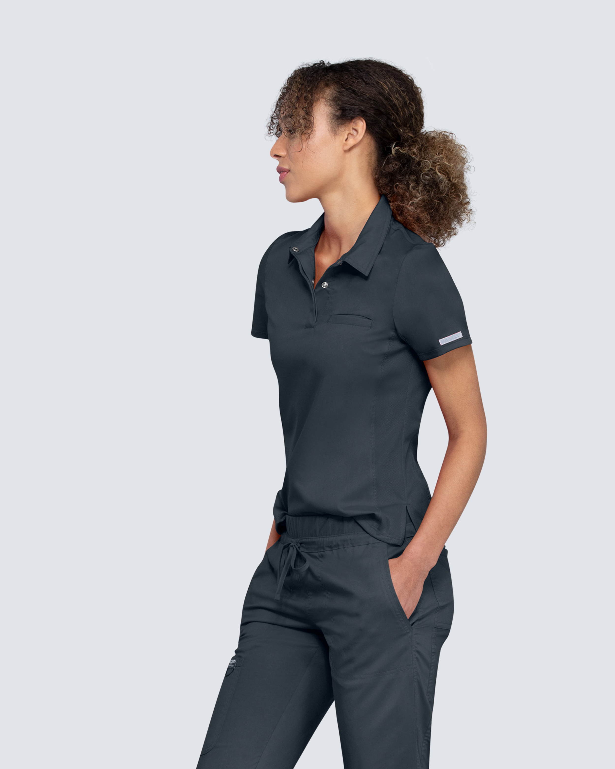 Perfekt für Pflegepersonal, das Funktion und persönlichen Ausdruck am Arbeitsplatz sucht: Dieses Polohemd in modern-klassischer Passform. Es kombiniert Stil und Funktion mit einem eleganten Kragen und einer verdeckten Knopfleiste mit drei Druckknöpfen. Eine Brusttasche mit Paspel und Mesh-Einsätze an den Seiten und unter den Ärmeln sorgen für Belüftung und Bewegungsfreiheit. Seitenschlitze schaffen eine schmeichelhafte Silhouette.