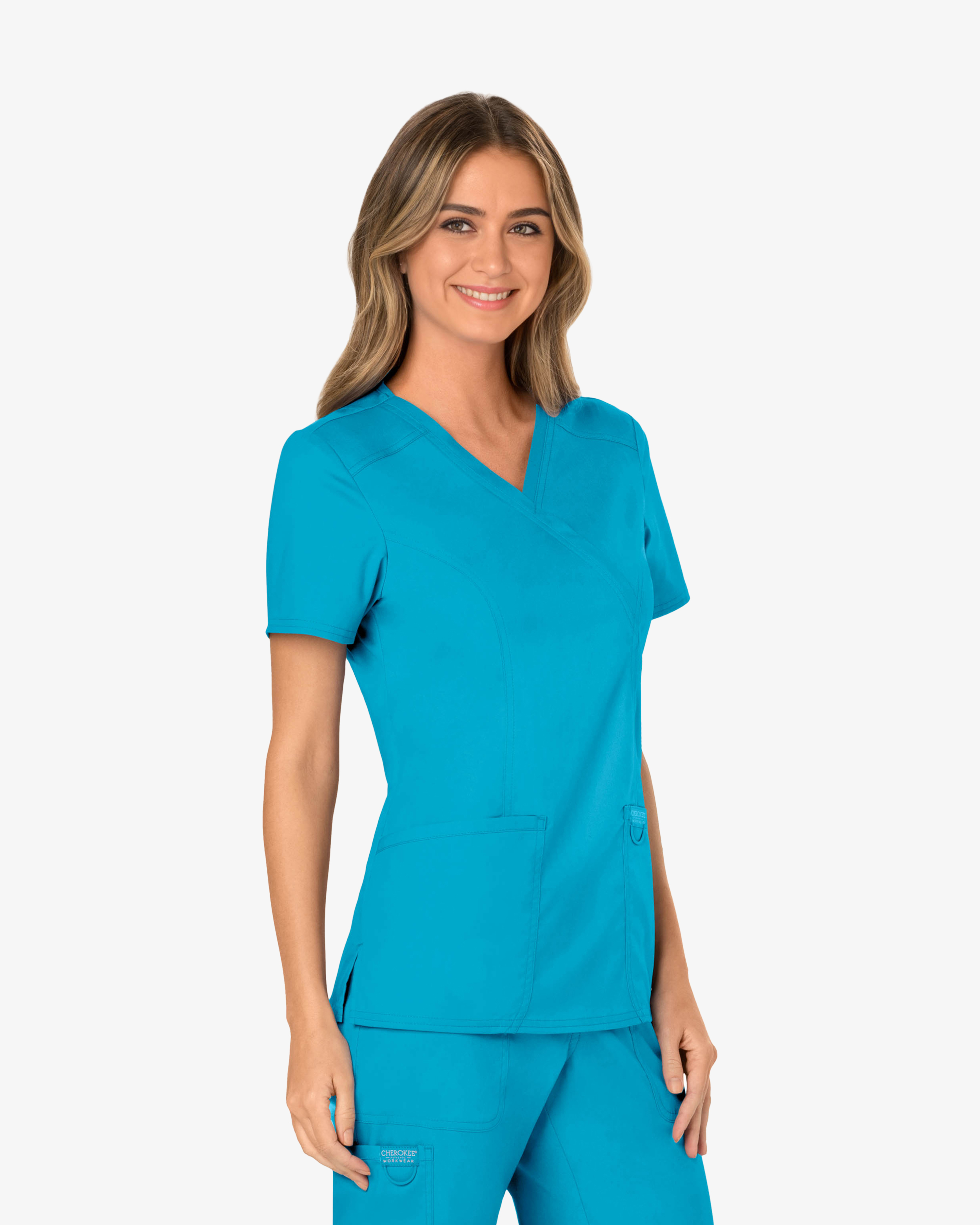 Diese weiche Tunika in Aqua im Wickelmodell bietet Stil und Komfort für den Beruf. Sie ist aus einem pflegeleichten Material gefertigt, das atmet und lange hält. Der 2-Wege-Stretch der Tunika sorgt für ein angenehmes Tragegefühl. Mit drei praktischen Taschen und einer Schlaufe haben Sie alles Nötige griffbereit. Ideal für ein stilvolles Oberteil.