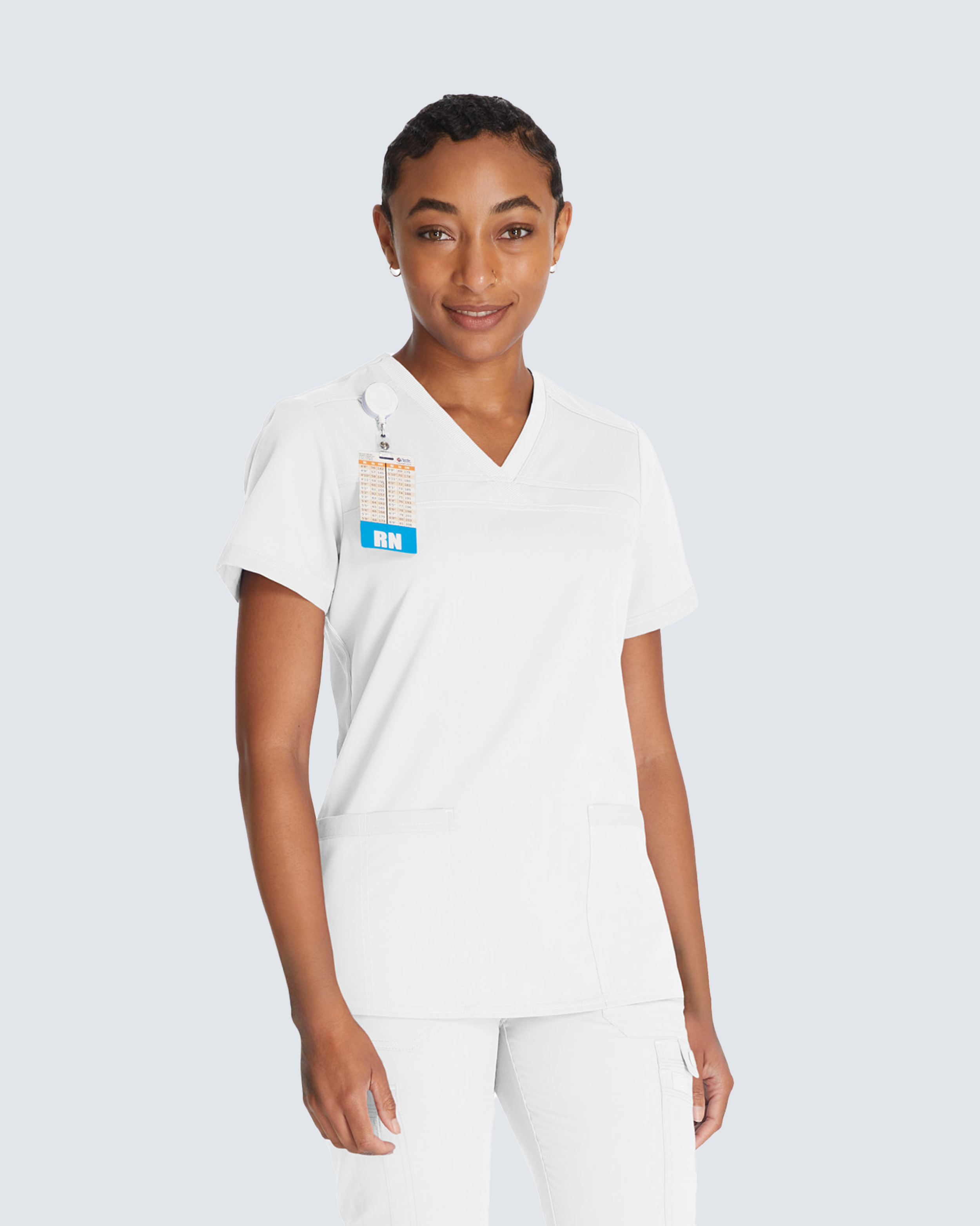Diese Damentunika ist die ideale Wahl für Pflegekräfte, die Stil und Komfort schätzen. Sie verfügt über einen weichen Rippstrick-V-Ausschnitt und rippgestrickte Seiteneinsätze, die für Komfort und Bewegungsfreiheit sorgen. Die leicht taillierte Passform und zwei aufgesetzte Taschen zur Aufbewahrung machen sie perfekt für lange Arbeitstage.