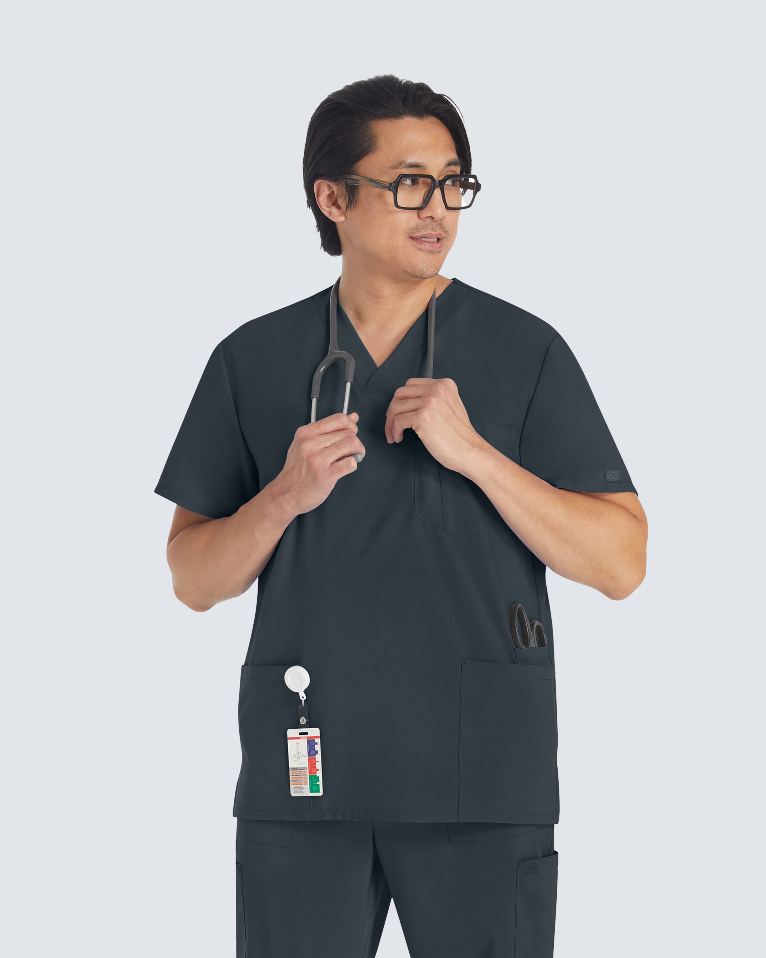 Mit seinem klassischen V-Ausschnitt-Design bietet dieser Herren-Kasack von Dickies unschlagbare Funktionalität und Komfort für das Pflegepersonal. 4 Taschen und eine Stifttasche sorgen dafür, dass Sie alle Werkzeuge zur Hand haben. Das feuchtigkeitsabsorbierende Material mit 4-Wege-Stretch ermöglicht optimale Bewegungsfreiheit.