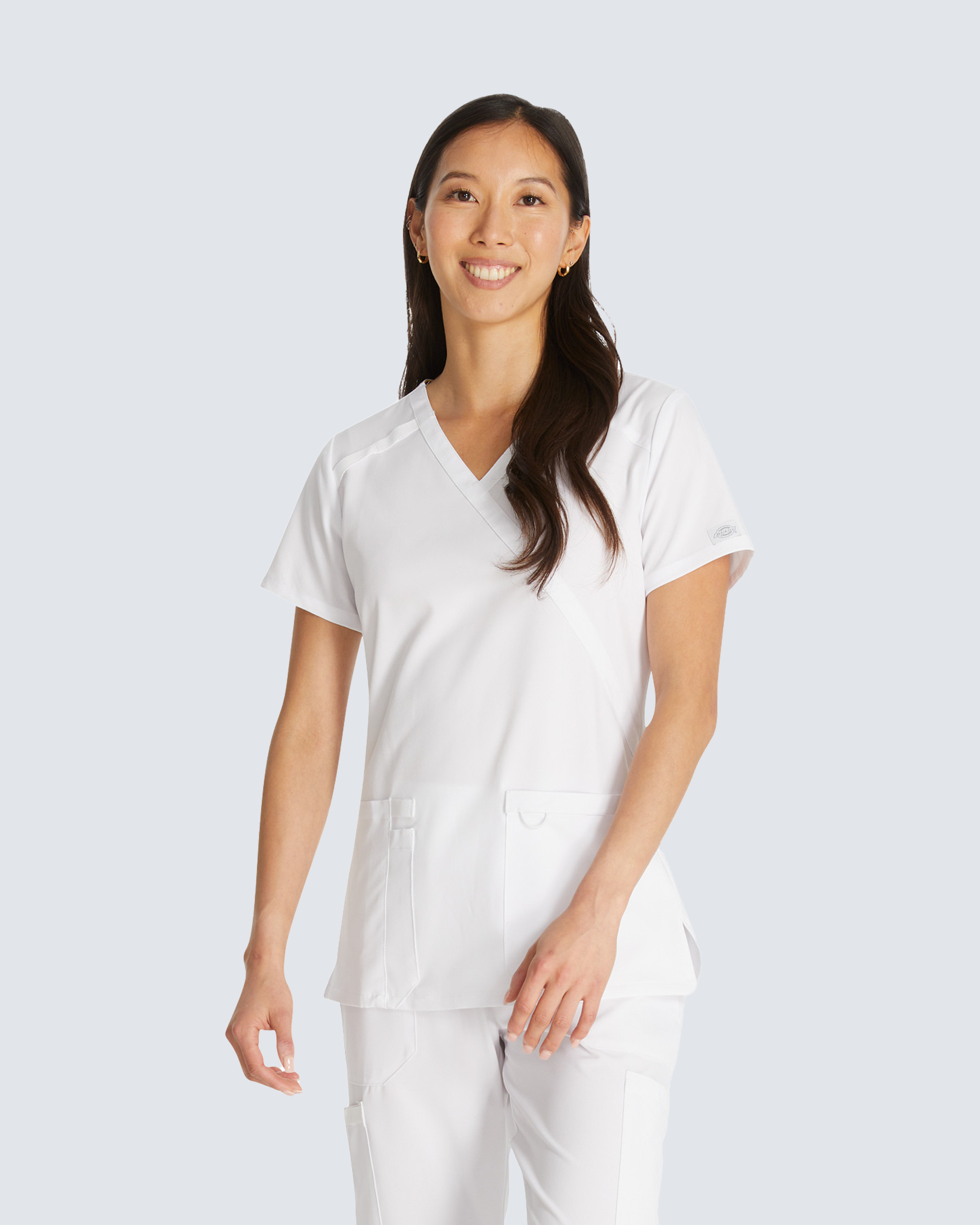 Das Dickies Mock Wrap Top ist eine moderne Tunika im Wickeldesign, die Stil und Funktionalität kombiniert. Es hat zwei praktische Taschen, einen Stifthalter und eine Schlüsselschlaufe zur einfachen Aufbewahrung kleiner Utensilien. Hergestellt aus einem langlebigen Material mit 4-Wege-Stretch, bietet dieses Oberteil optimale Bewegungsfreiheit. Das knitterfreie Material sorgt dafür, dass Sie immer professionell aussehen, egal wie hektisch der Arbeitstag wird.