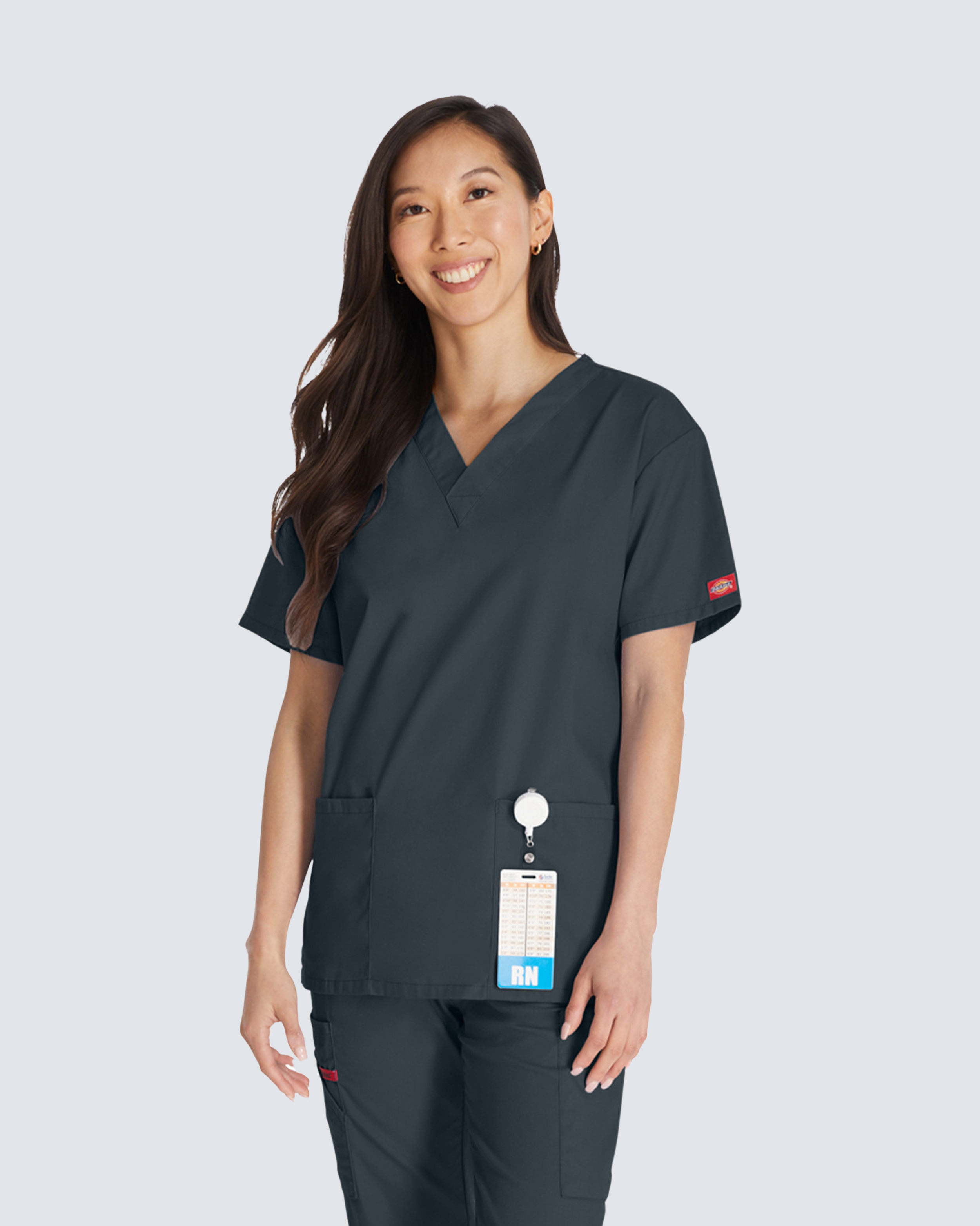Dieser aus strapazierfähigem Material gefertigte Dickies Kasack mit V-Ausschnitt ist eine verlässliche Wahl für das Gesundheitswesen. Er ist für lange Arbeitstage konzipiert und bietet mit seiner klassischen Passform, den höheren Schlitzen und den drei Taschen (eine davon eine verdeckte Stretch-Innentasche) Funktionalität, Stil und Komfort.