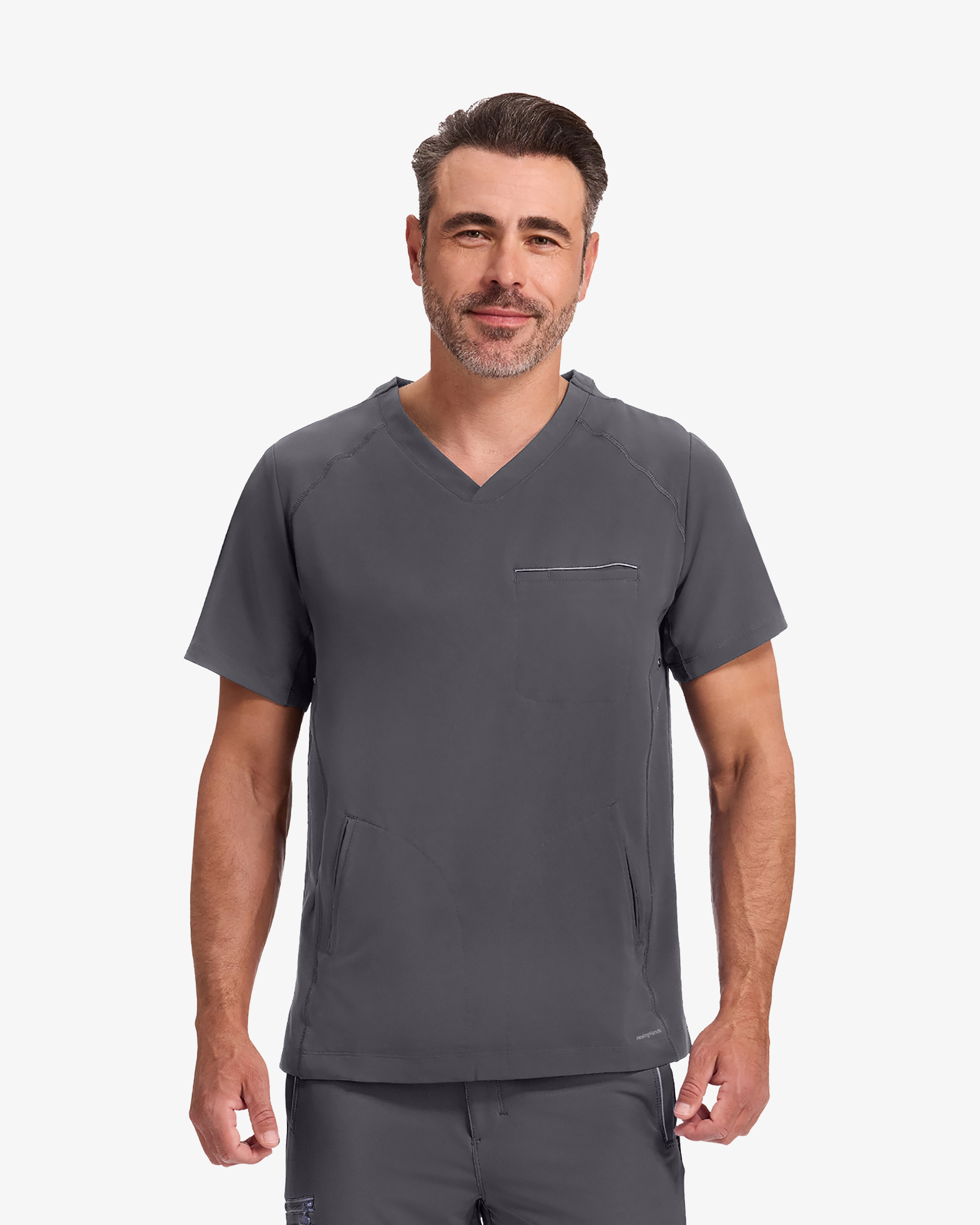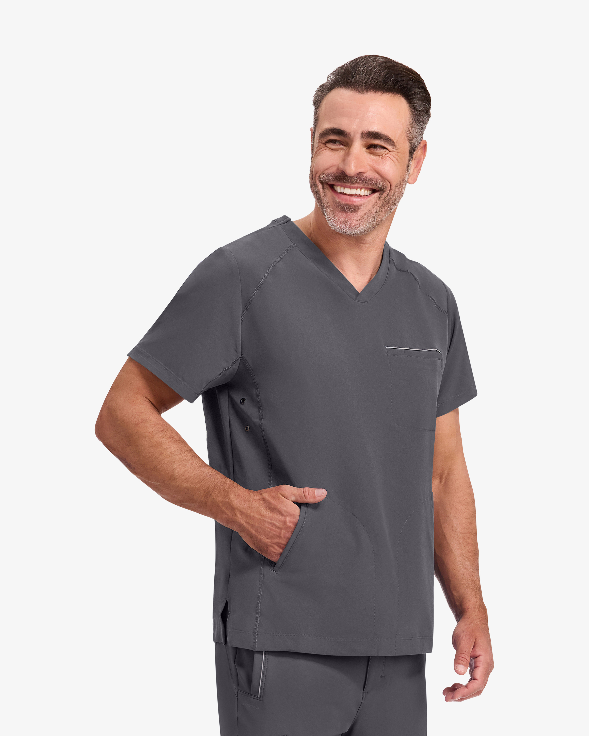 Tunika mit V-Ausschnitt und drei praktischen Taschen - eine Brusttasche und zwei Vordertaschen - zum einfachen Verstauen von Utensilien bei intensiven Trainingseinheiten. Sie verfügt über 4-Wege-Stretch für optimale Bewegungsfreiheit und sportliche Flatlock-Nähte für zusätzliche Strapazierfähigkeit. Schicke Ösen an den Seitenteilen sorgen für einen modernen und individuellen Stil bei der Arbeit.