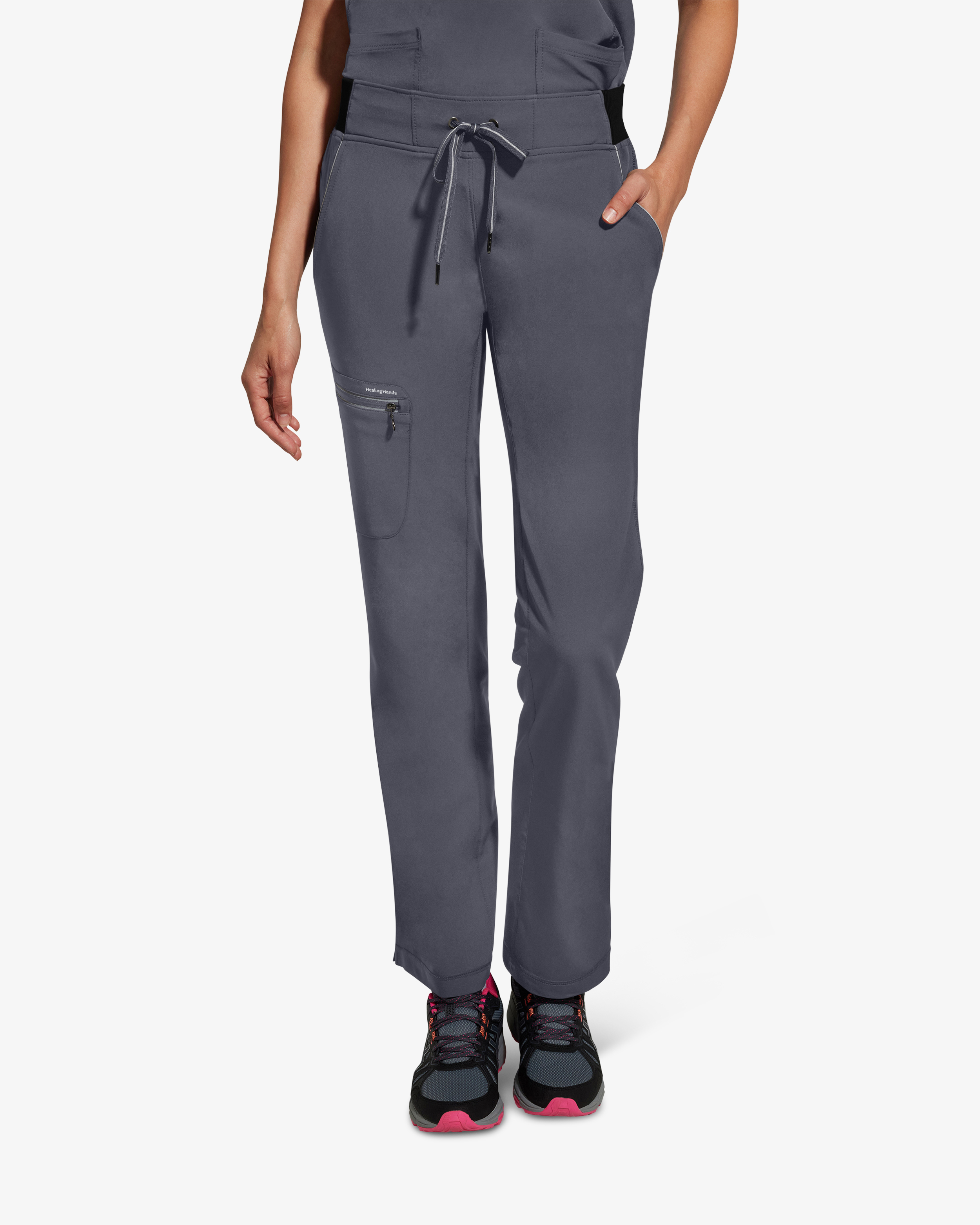 Diese Unisex-Arbeitshose hat eine mittelhohe Taille und einen gerippten Bund mit Kordelzug für optimalen Komfort und eine verstellbare Passform. Der Stretch-Stoff ermöglicht Bewegungsfreiheit bei langen Schichten, während mehrere praktische Taschen helfen, Arbeitsutensilien zu organisieren. Stilvolles und modernes Design wird mit Funktionalität kombiniert, um die Anforderungen der Gesundheitsbranche an Stil und Leistung zu erfüllen.