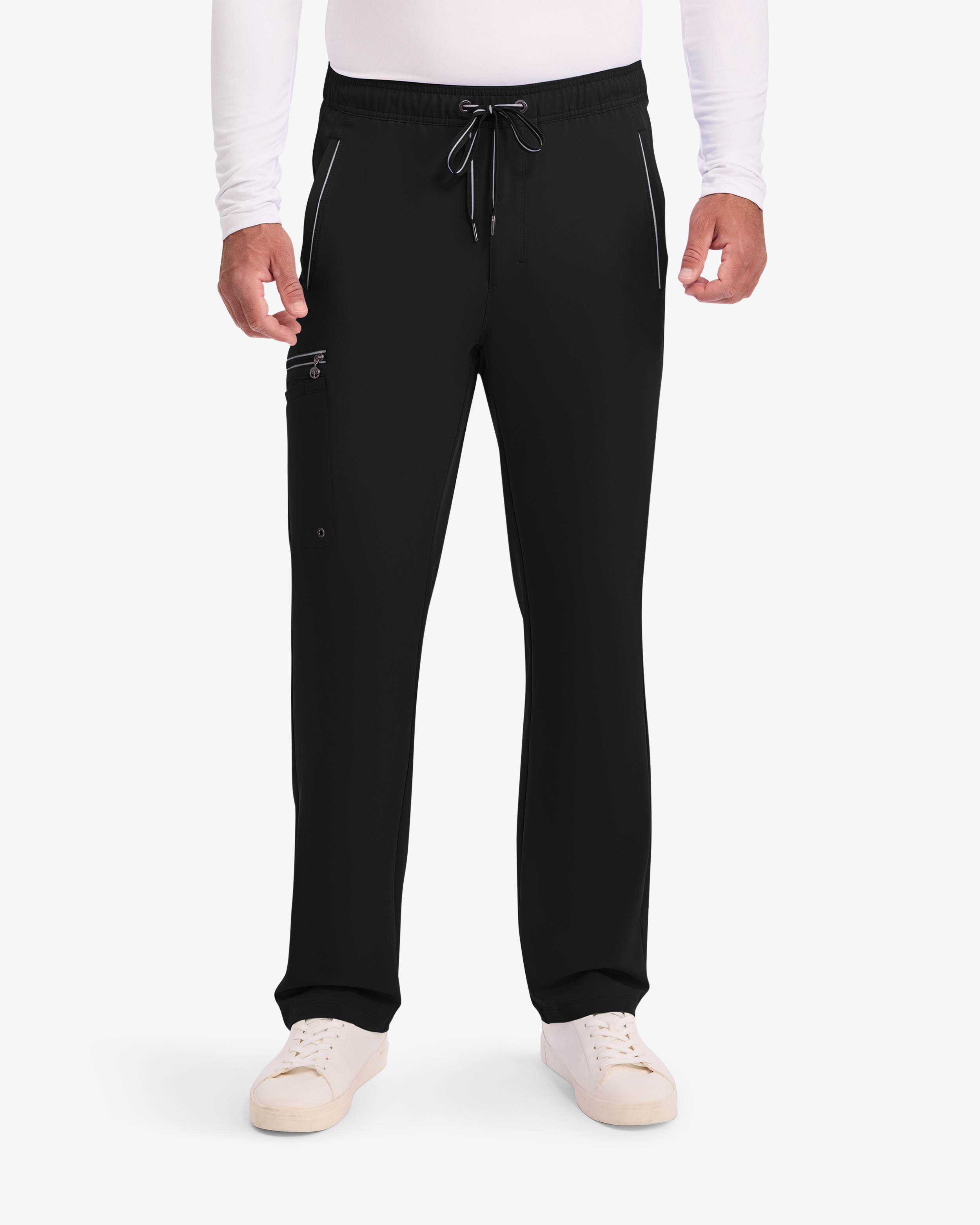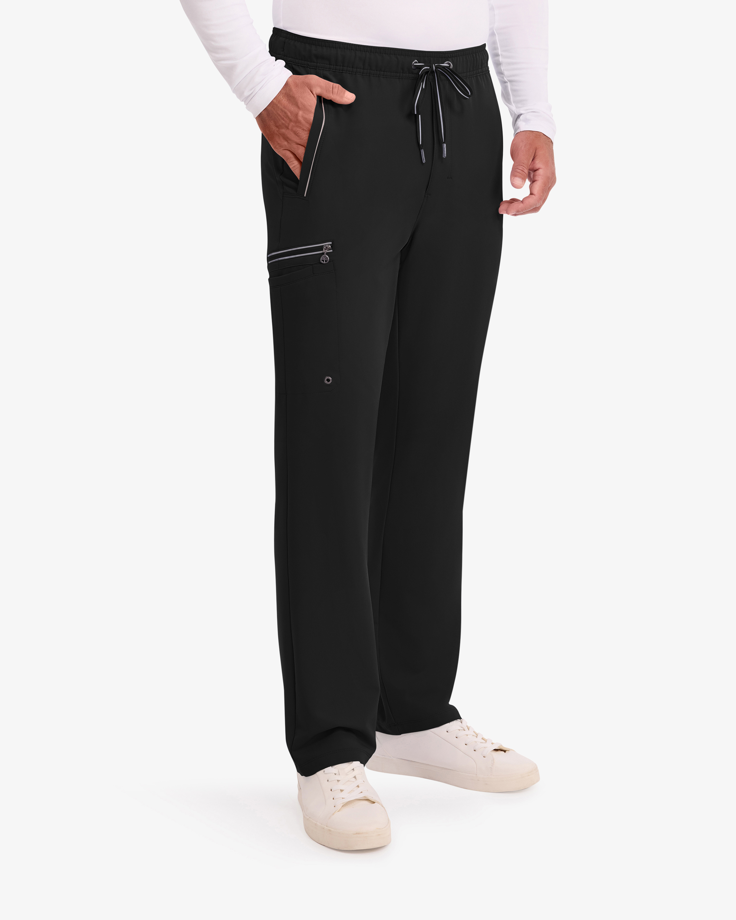 Die Arbeitshose hat eine moderne gerade Passform mit einem elastischen Bund und einem verstellbaren Kordelzug für optimalen ganztägigen Komfort. Der mittelhohe Bund und der Hosenschlitz mit Reißverschluss bieten zusätzliche Bewegungsfreiheit für aktive Arbeitstage. Sieben praktische Taschen, darunter Cargotaschen, eine Stifttasche und ein sicherer Reißverschluss, erleichtern die Organisation wichtiger Utensilien - perfekt für Fachkräfte im Gesundheitswesen mit hohen Ansprüchen an Funktion und Stil.