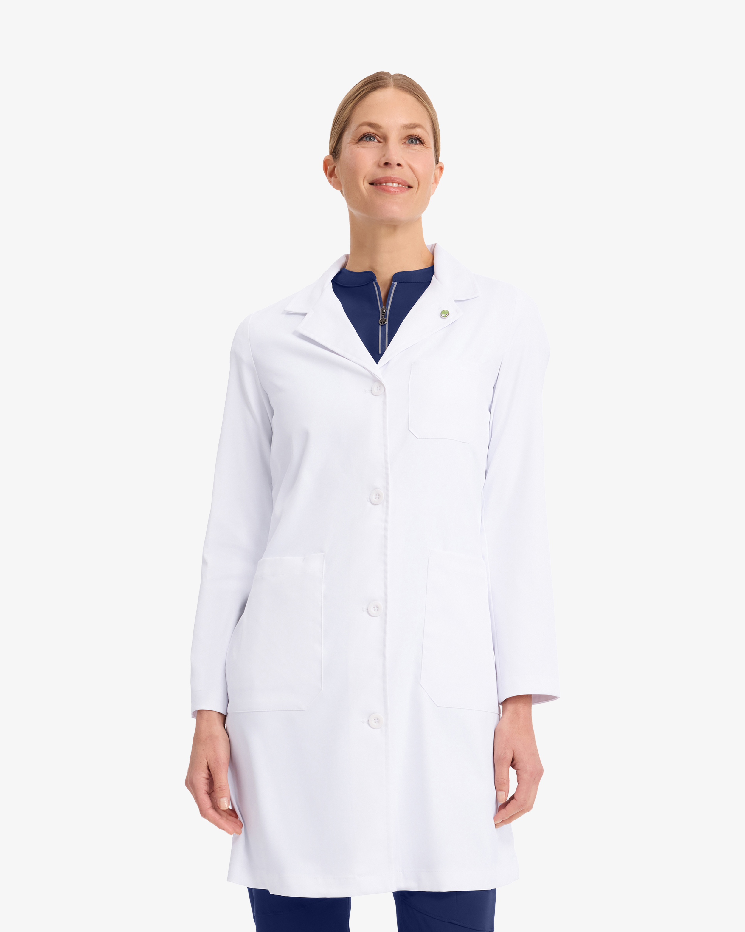Dieser bodenlange Arztkittel verbindet modernes Design mit Funktionalität. Das Modell ist aus einem geschmeidigen Stoff mit Zwei-Wege-Stretch gefertigt und bietet optimale Bewegungsfreiheit und Komfort bei langen Schichten. Dank der lockeren Passform lässt sich der Mantel auch über mehrere Schichten bequem tragen. Mehrere praktische Taschen erleichtern das Verstauen von Werkzeug und persönlichen Gegenständen.