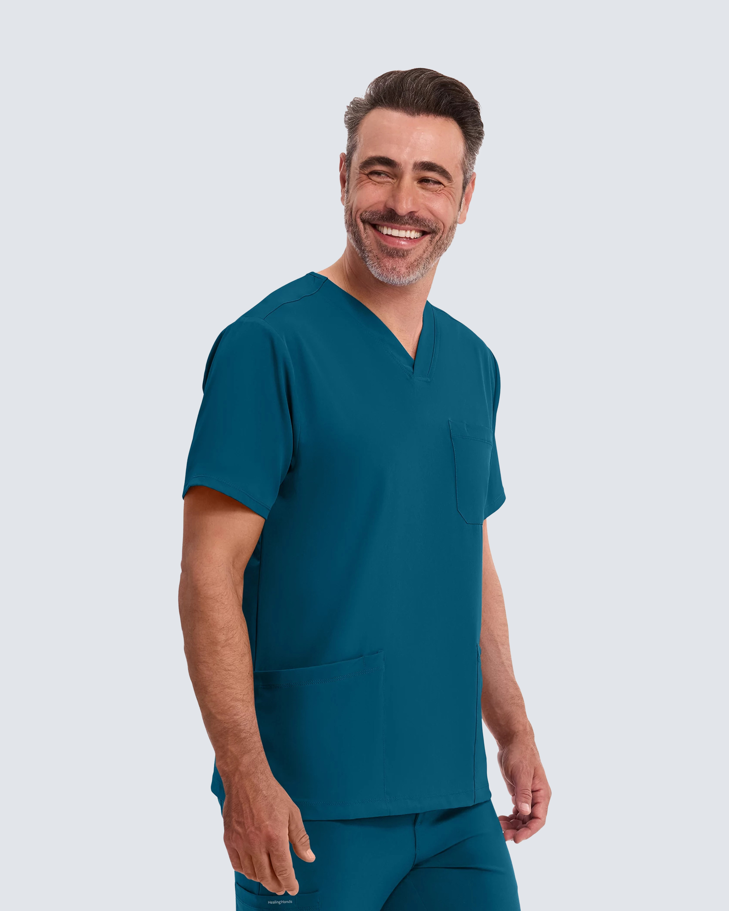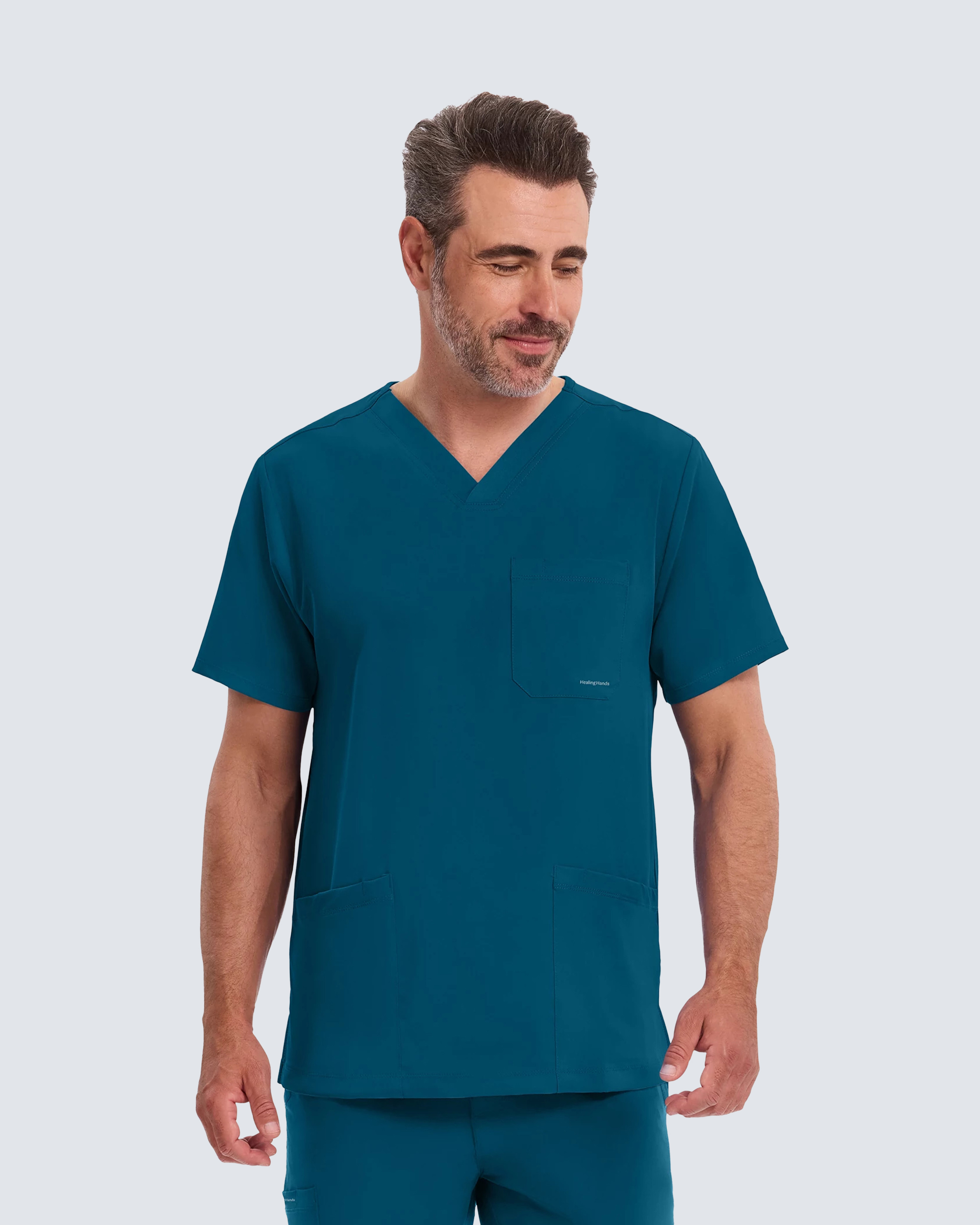 Das Mathew-Top von Healing Hands wurde für Männer geschaffen, die Komfort und Funktion priorisieren. Es hat eine moderne Passform und ist aus einem weichen Stoff mit natürlichen feuchtigkeitsableitenden Eigenschaften gefertigt, der Sie bei langen Arbeitsschichten bequem hält. Das Material besteht aus 91% Polyester und 9% Spandex, was die Geschmeidigkeit und Flexibilität bietet, die in einem aktiven Beruf notwendig ist.