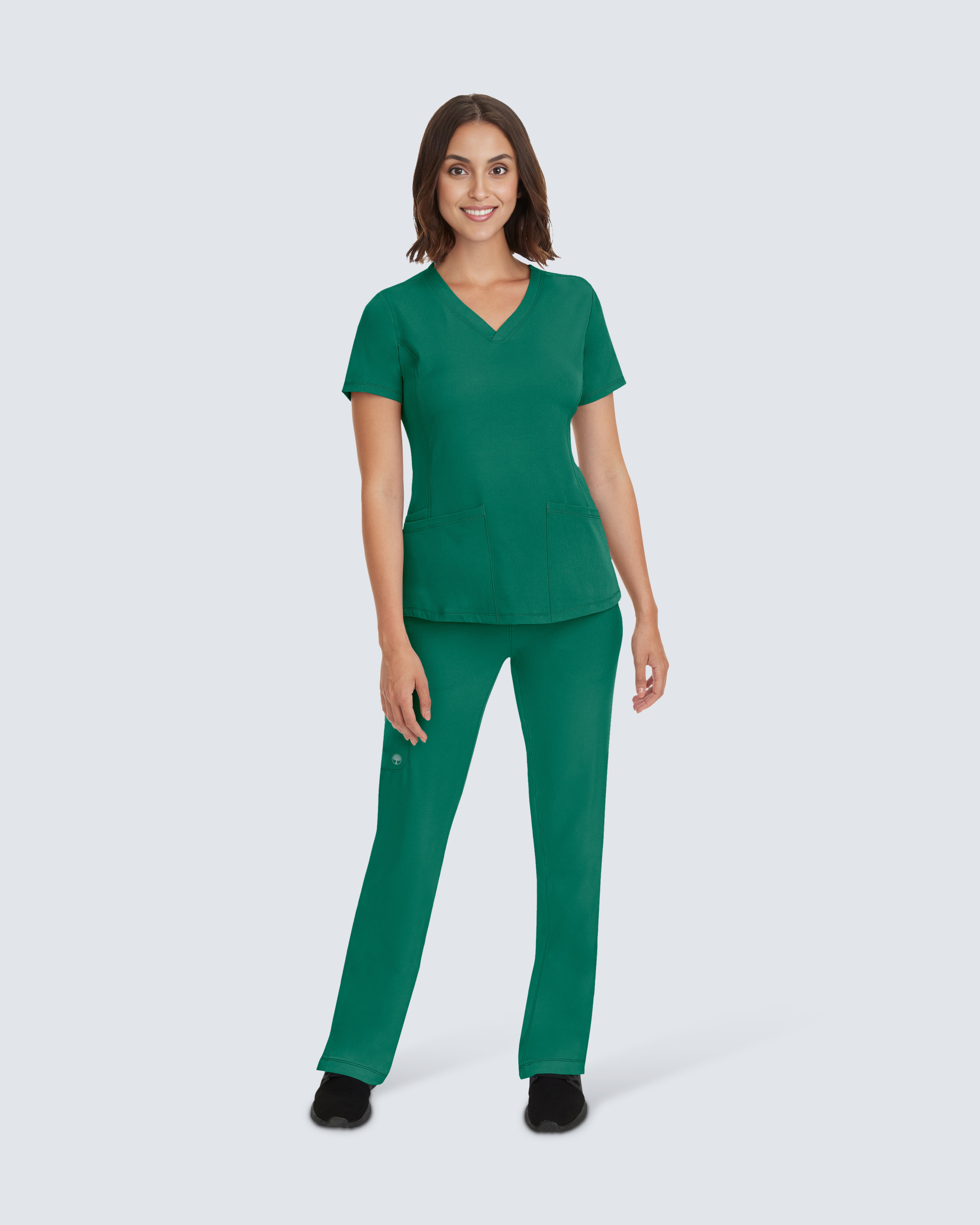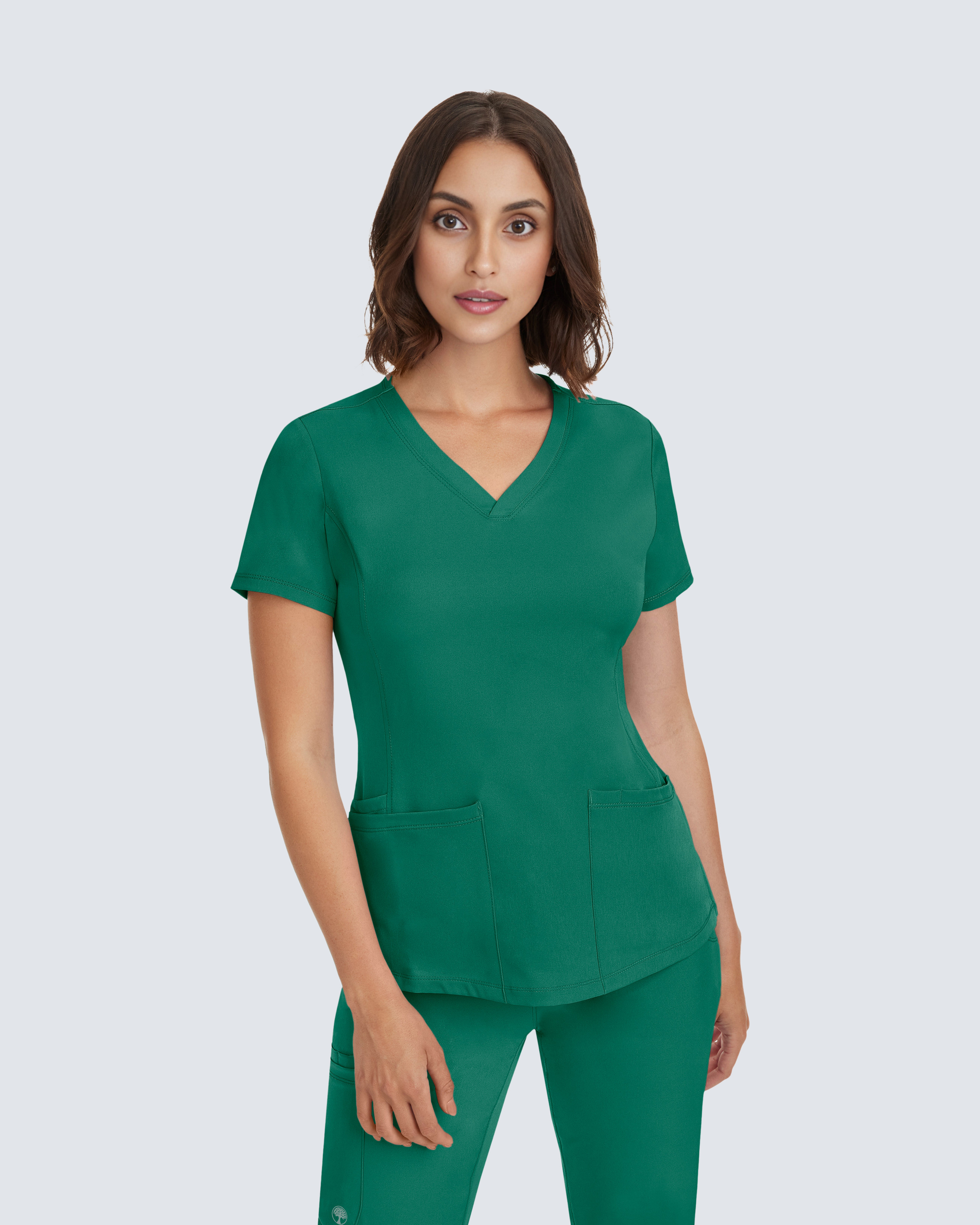 Das Monica-Top von Healing Hands ist auf Stil, Funktion und ganztägigen Komfort ausgelegt. Dieses V-Ausschnitt-Top mit moderner Passform und vorderer Prinzessnaht formt eine schmeichelhafte und professionelle Silhouette. Hergestellt aus einem weichen und dehnbaren Material (91% Polyester und 9% Spandex), das volle Bewegungsfreiheit während des Arbeitstages ermöglicht.