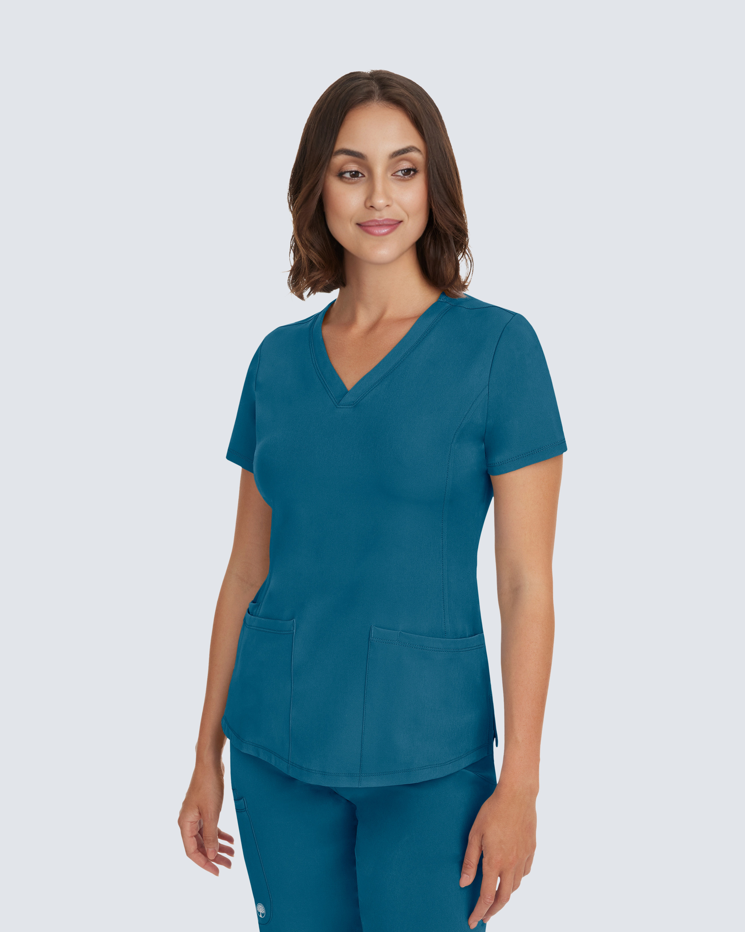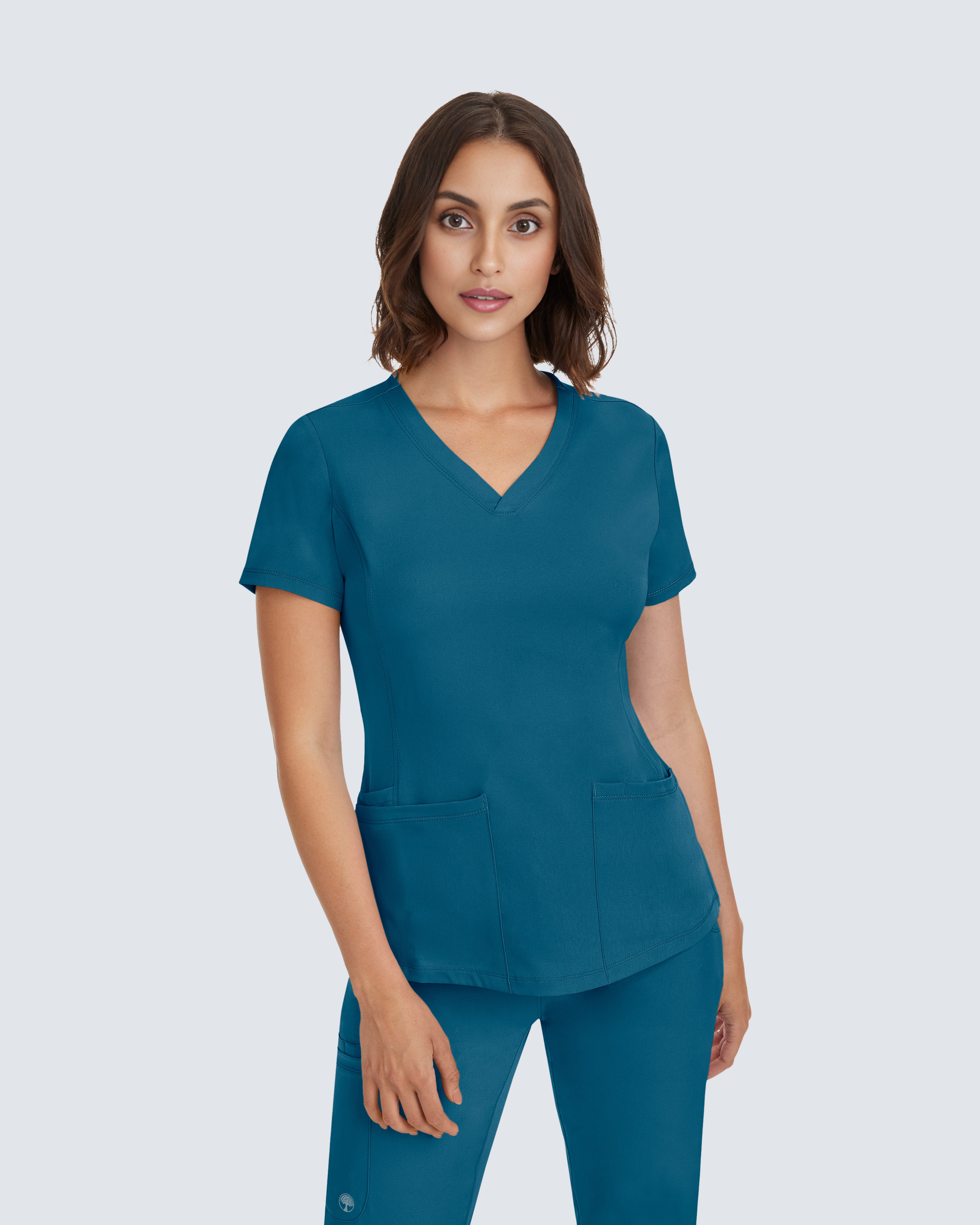 Entwickelt mit Fokus auf Stil und Funktion, bietet das Monica-Top von Healing Hands den ganzen Arbeitstag über angenehmen Komfort. Dieses Top mit V-Ausschnitt hat eine moderne Passform und eine Prinzessnaht vorne, die eine schmeichelhafte und professionelle Silhouette formt. Es ist aus einem weichen und dehnbaren Material (91% Polyester, 9% Spandex) gefertigt, das volle Bewegungsfreiheit ermöglicht.