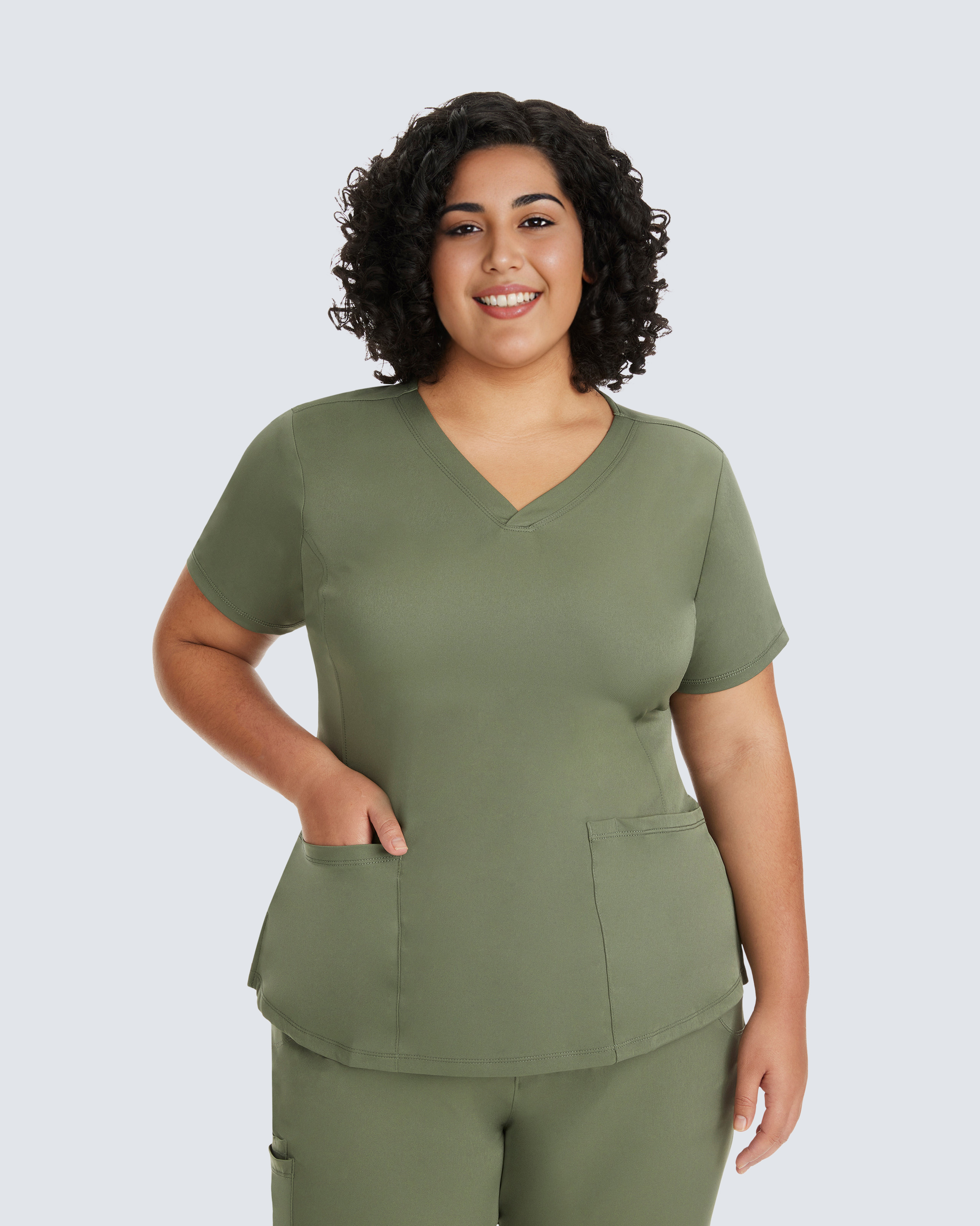 Mit Fokus auf Stil und Funktion wurde das Monica-Top von Healing Hands entwickelt, um den ganzen Arbeitstag über Komfort zu bieten. Dieses Top mit V-Ausschnitt hat eine moderne Passform und eine Prinzessnaht vorne, die eine schmeichelhafte, professionelle Silhouette schafft. Das weiche und dehnbare Material aus 91% Polyester und 9% Spandex sorgt für volle Bewegungsfreiheit.