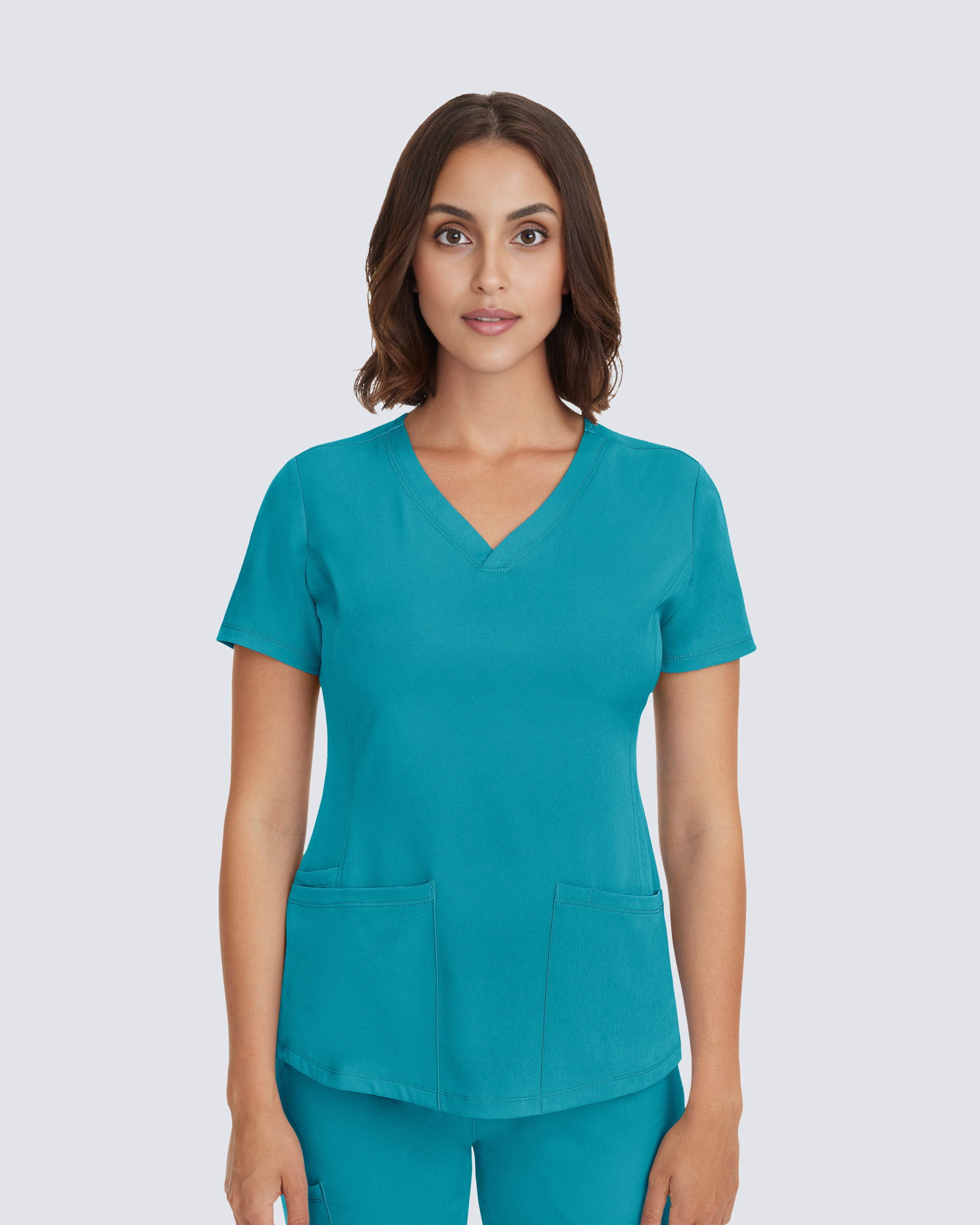 Das Monica-Top von Healing Hands wurde mit Fokus auf Stil und Funktion entwickelt, um Ihnen den ganzen Arbeitstag über angenehmen Komfort zu bieten. Dieses V-Ausschnitt-Top hat eine moderne Passform und eine vordere Prinzessnaht, die eine schmeichelhafte und professionelle Silhouette schafft. Das Top ist aus einem weichen und dehnbaren Material gefertigt, das aus 91% Polyester und 9% Spandex besteht, was volle Bewegungsfreiheit während des Arbeitstages ermöglicht.