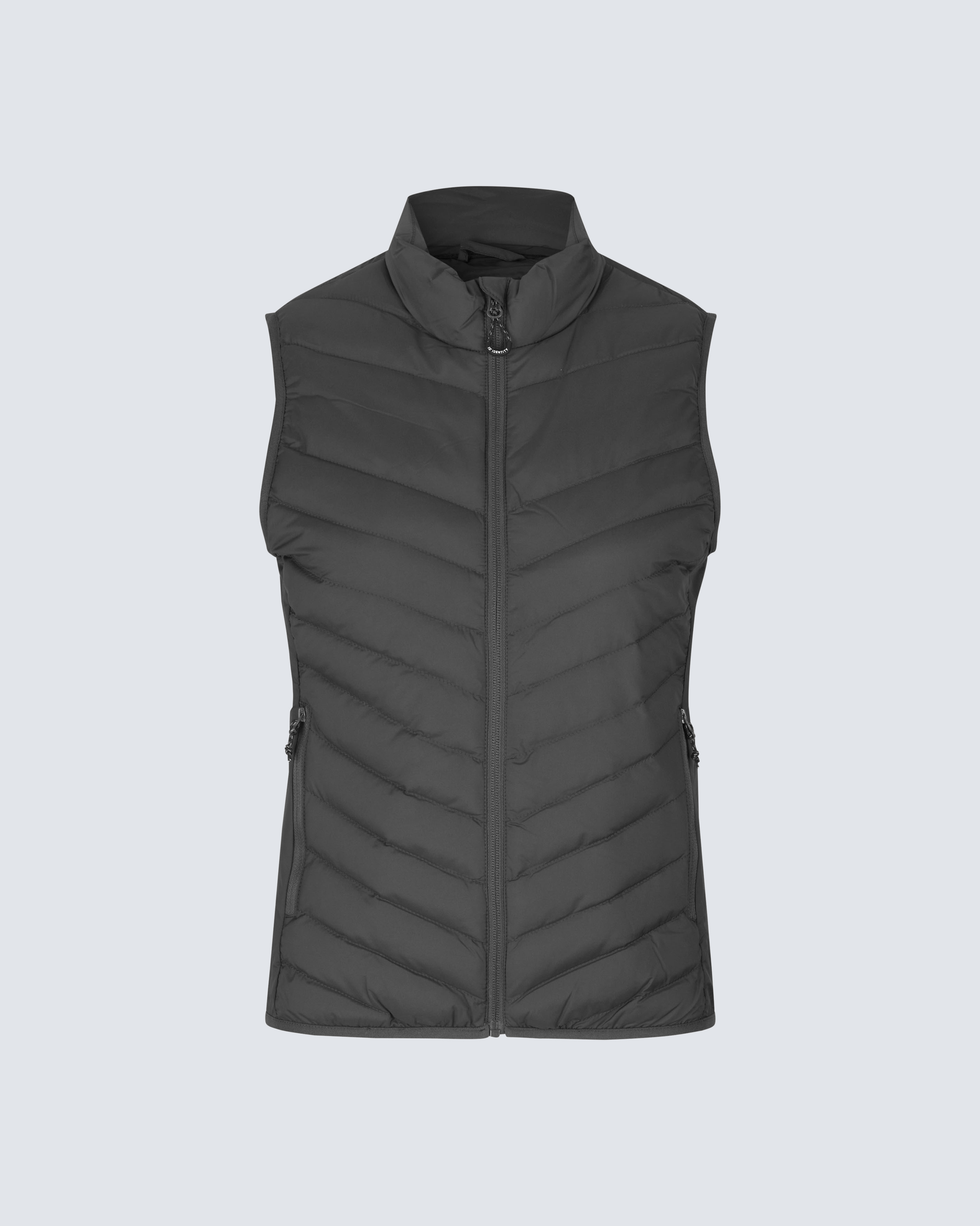 Die wattierte Weste ist die perfekte Wahl für Frühling und Herbst, mit schmalen diagonalen Kanälen, die einen sportlichen Look erzeugen. Stretchige Seiteneinsätze gewährleisten optimalen Komfort und Bewegungsfreiheit über den ganzen Tag. Die seitlichen Reißverschlusstaschen bieten sicheren Stauraum.