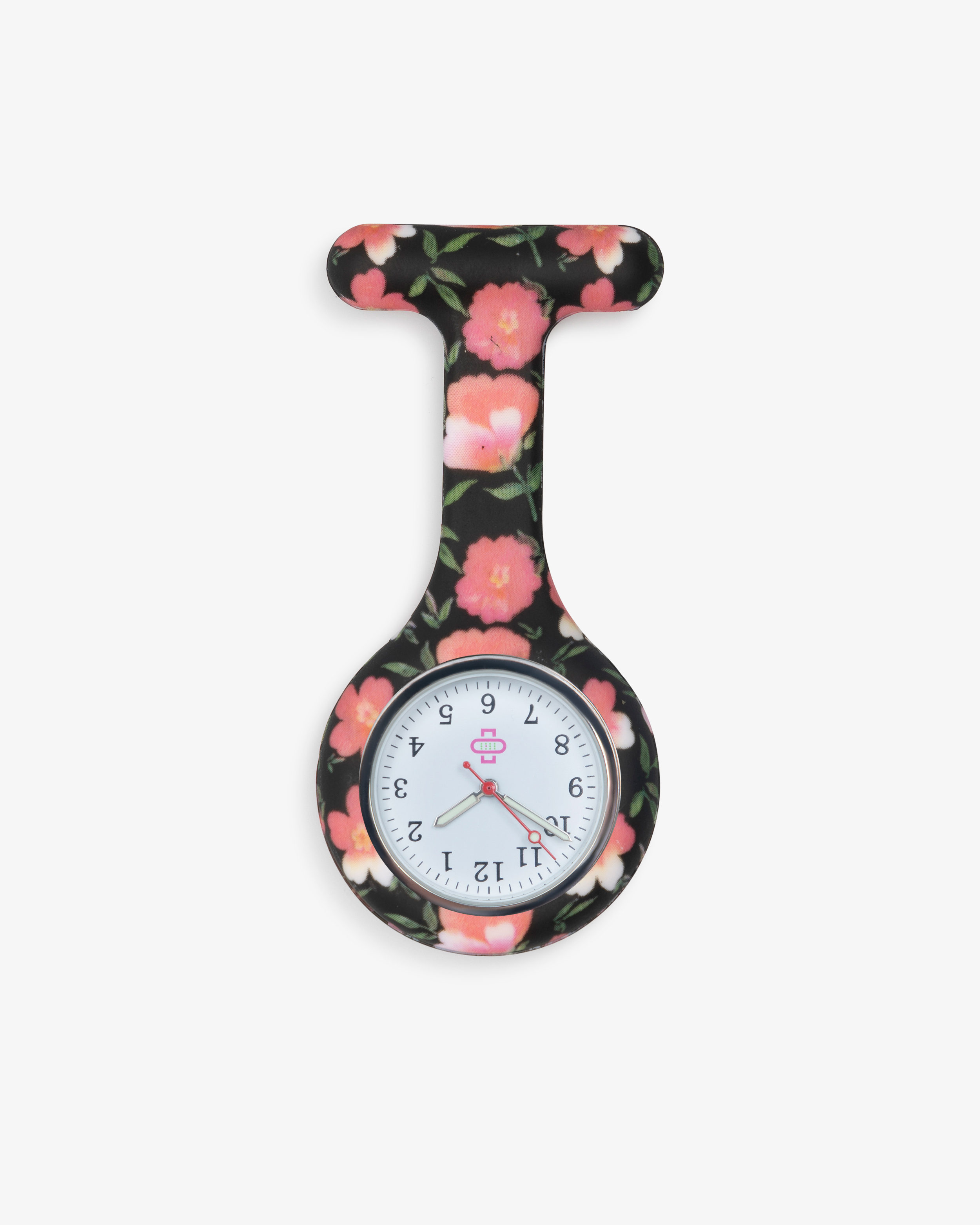 Verleihen Sie Ihrer Arbeitsuniform eine besondere Note mit unserer blühenden Schwesternuhr in Schwarz mit floralem Design. Sie kombiniert eine stilvolle Basis mit einem verspielten Muster – perfekt für Sie, wenn Sie mit Details auffallen möchten, die Freude im Pflegealltag verbreiten.