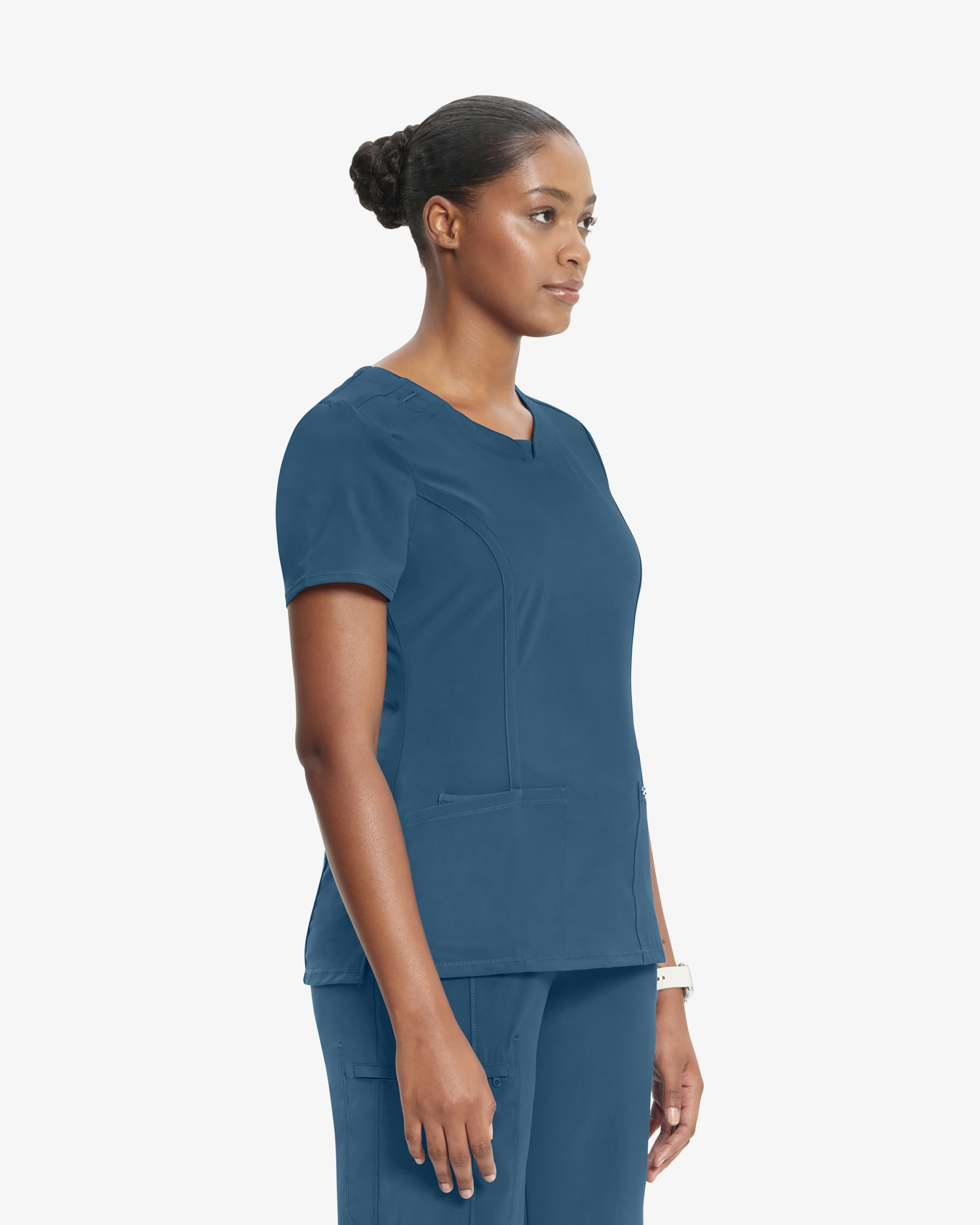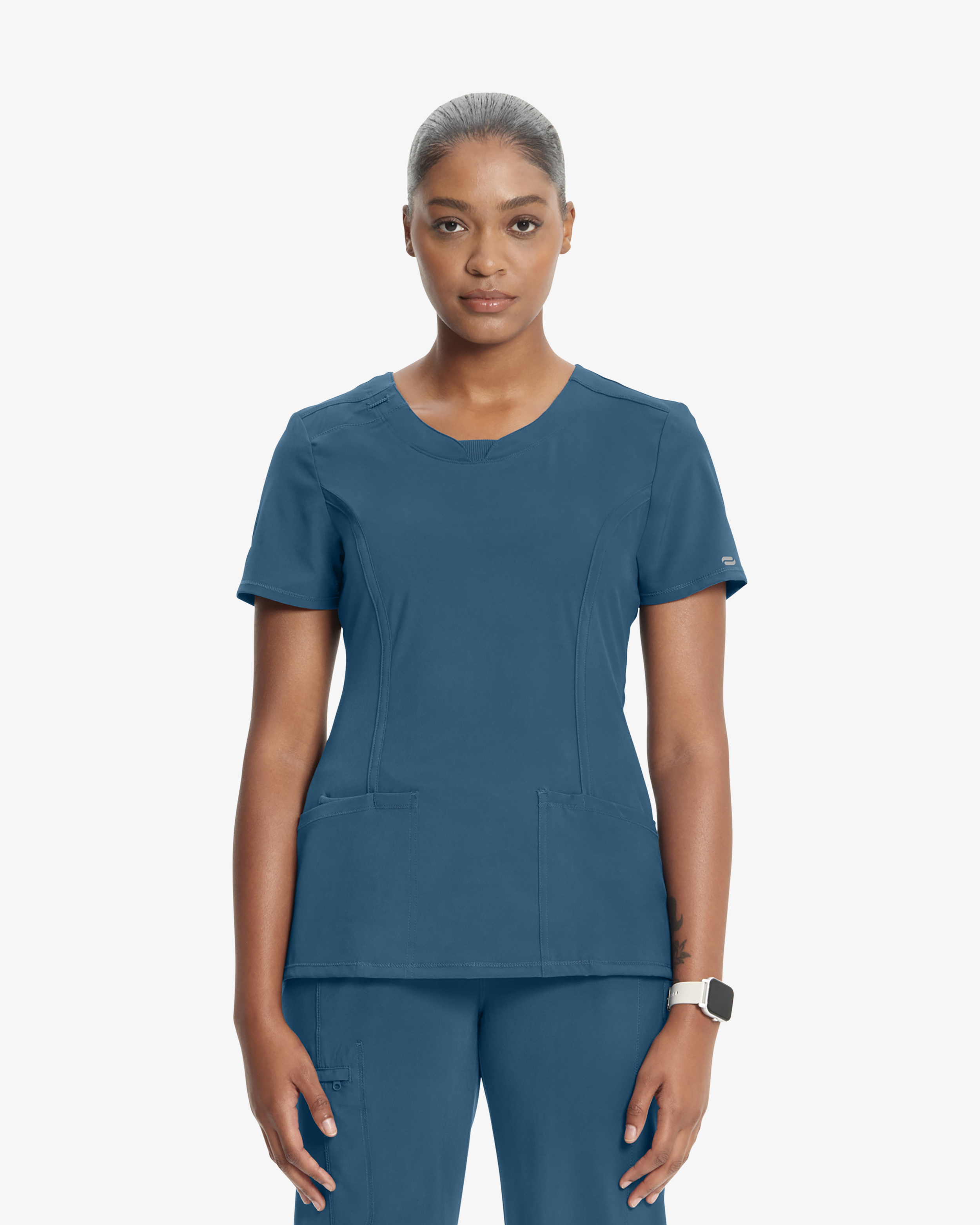 Diese moderne Tunika für Fachkräfte im Gesundheitswesen vereint Funktion und Stil mit ihrer zeitgemäßen Passform, dem Rundhalsausschnitt und dem Stretcheinsatz am Rücken für zusätzliche Bewegungsfreiheit. Details wie die Ausweisschlaufe, Prinzessnähte, praktische Taschen und Seitenschlitze machen das Kleidungsstück geschmeidig und praktisch zugleich. Stretch-Popeline und Super-Stretch-Rippstrick sorgen für bequemen 4-Wege-Stretch, während die PROTX2-Technologie Feuchtigkeit und Geruch an intensiven Arbeitstagen bekämpft.