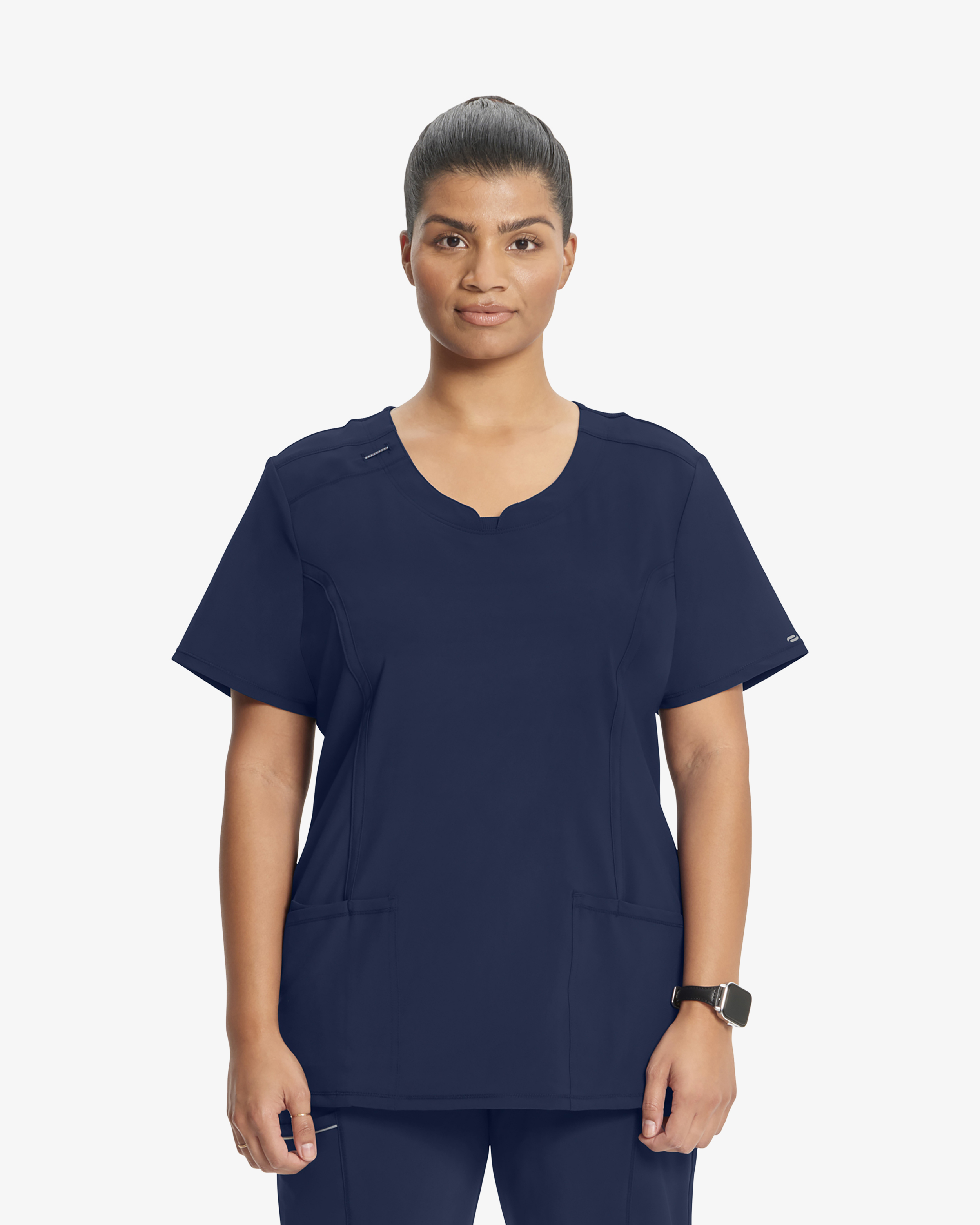 Diese moderne Tunika für Fachkräfte im Gesundheitswesen vereint Funktion und Stil mit ihrer zeitgemäßen Passform, dem Rundhalsausschnitt und dem Stretcheinsatz am Rücken für zusätzliche Bewegungsfreiheit. Details wie die Ausweisschlaufe, Prinzessnähte, praktische Taschen und Seitenschlitze machen das Kleidungsstück geschmeidig und praktisch zugleich. Stretch-Popeline und Super-Stretch-Rippstrick sorgen für bequemen 4-Wege-Stretch, während die PROTX2-Technologie Feuchtigkeit und Geruch an intensiven Arbeitstagen bekämpft.
